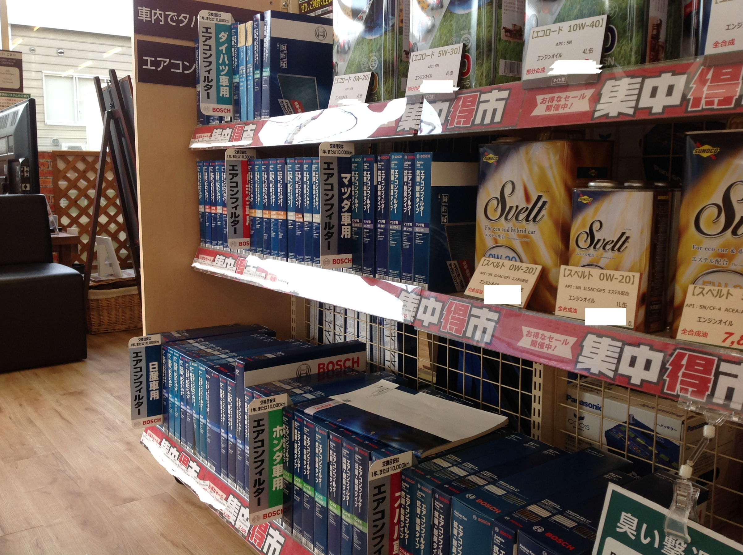 昨日沢山あったエアコンフィルターも大体の陳列を終え