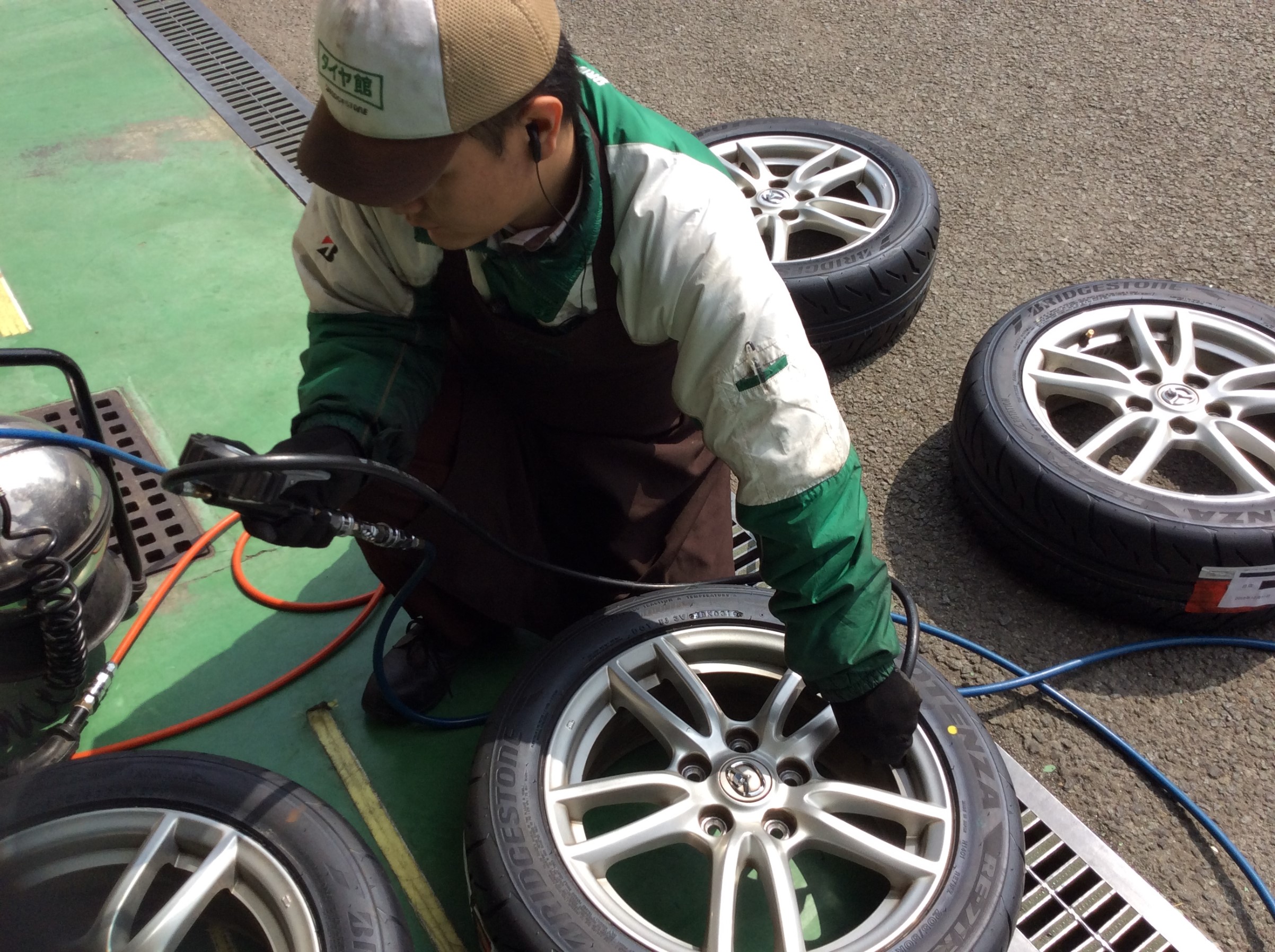 刑部スタッフが空気圧を計測しているこのタイヤは…。