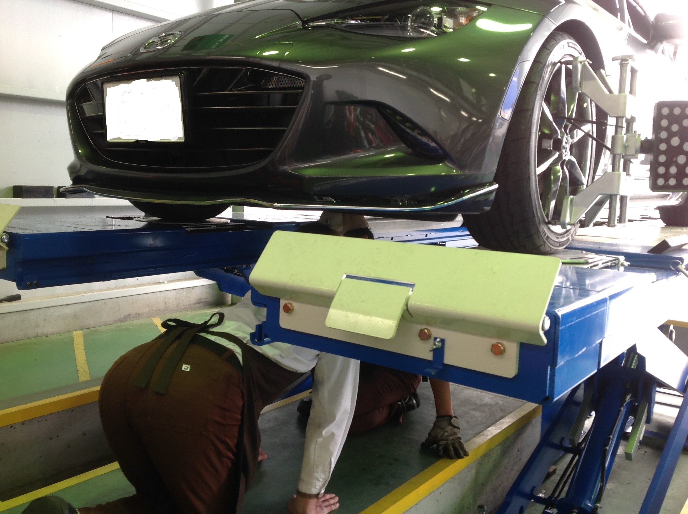 そんなロードスター、本日は最近タイヤと車高調を変えたとの事でアライメント作業の為やってきました!
