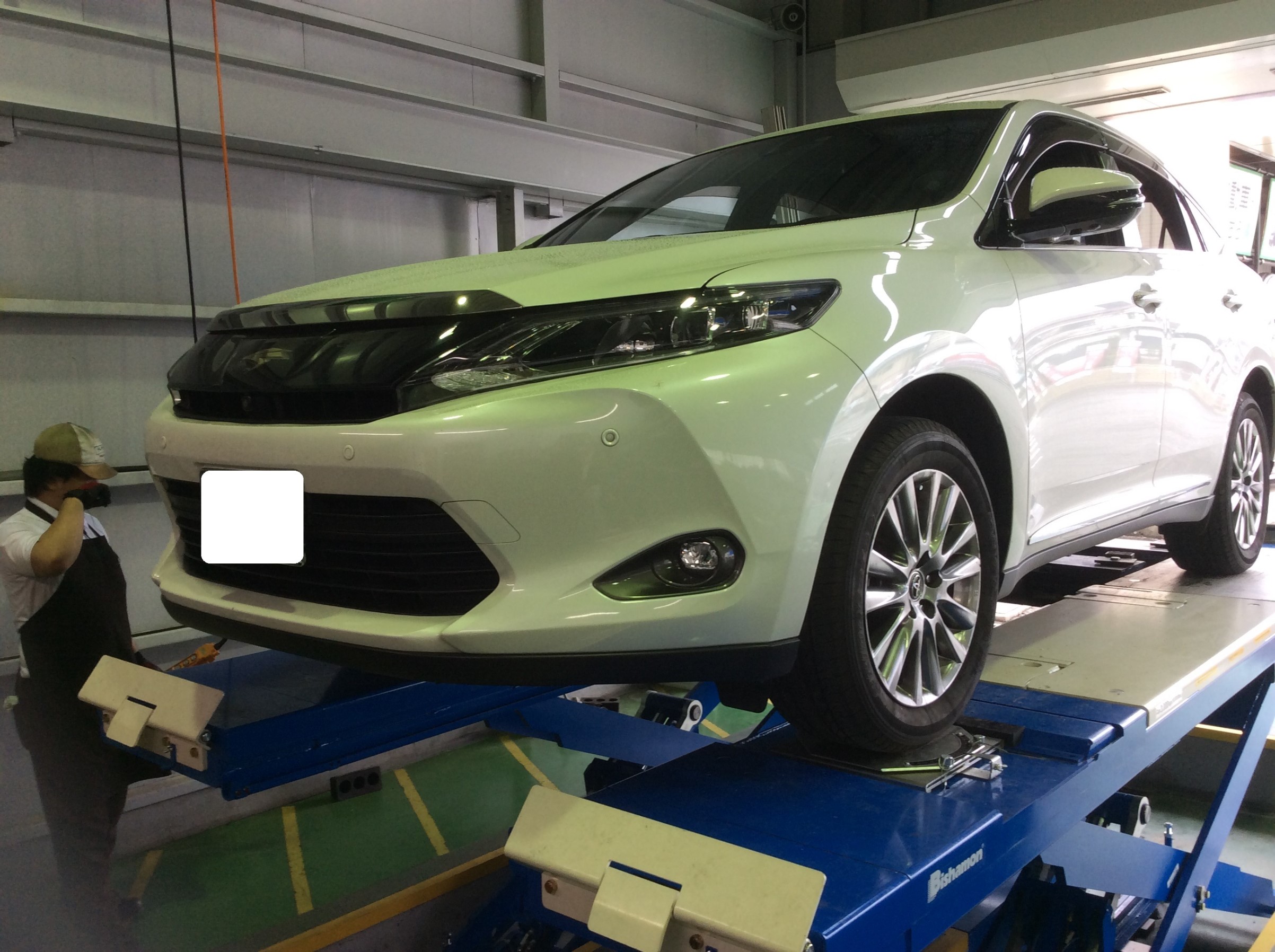 ↓ ハリアーのアライメント作業中