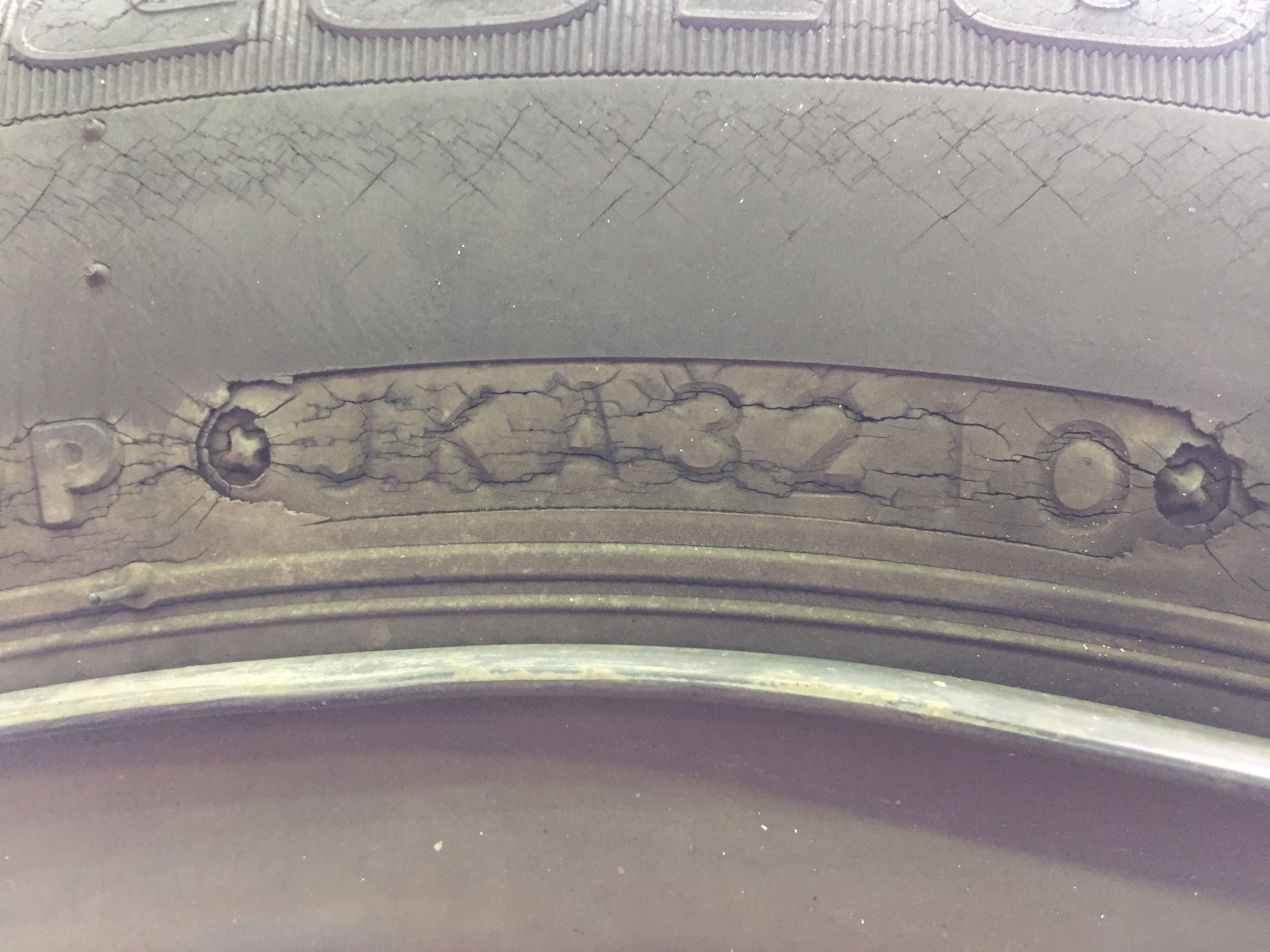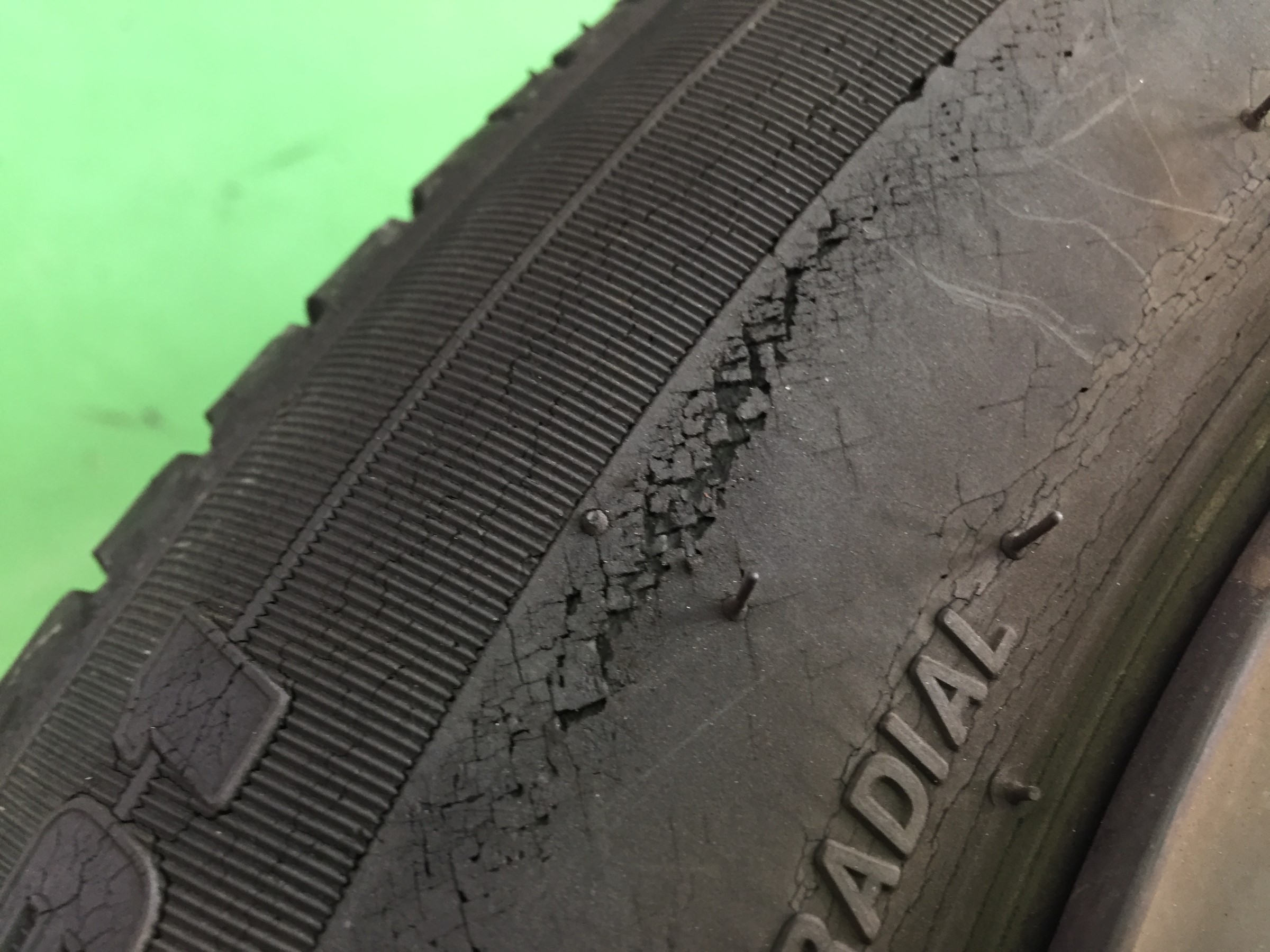 9年前のタイヤ、トレッド面までヒビが進行してきてボロボロです…
