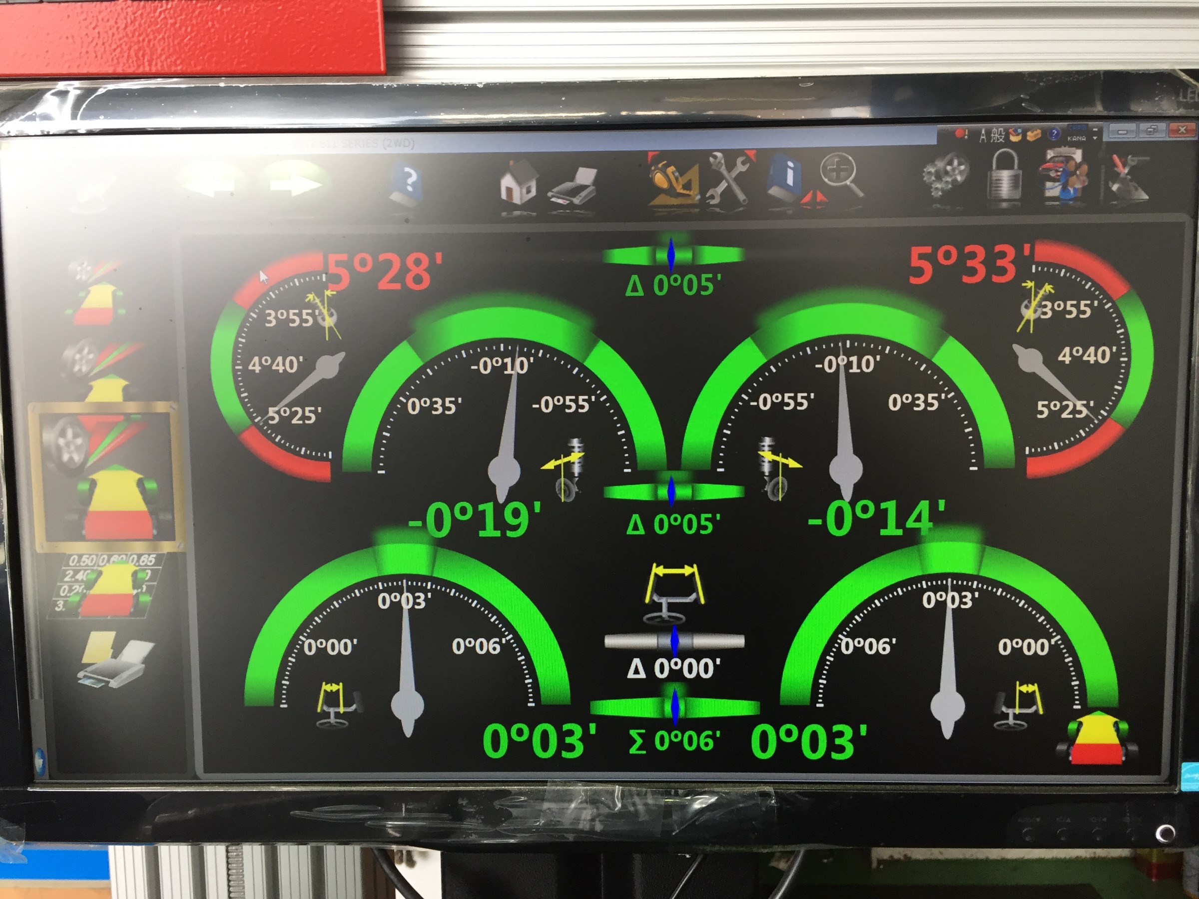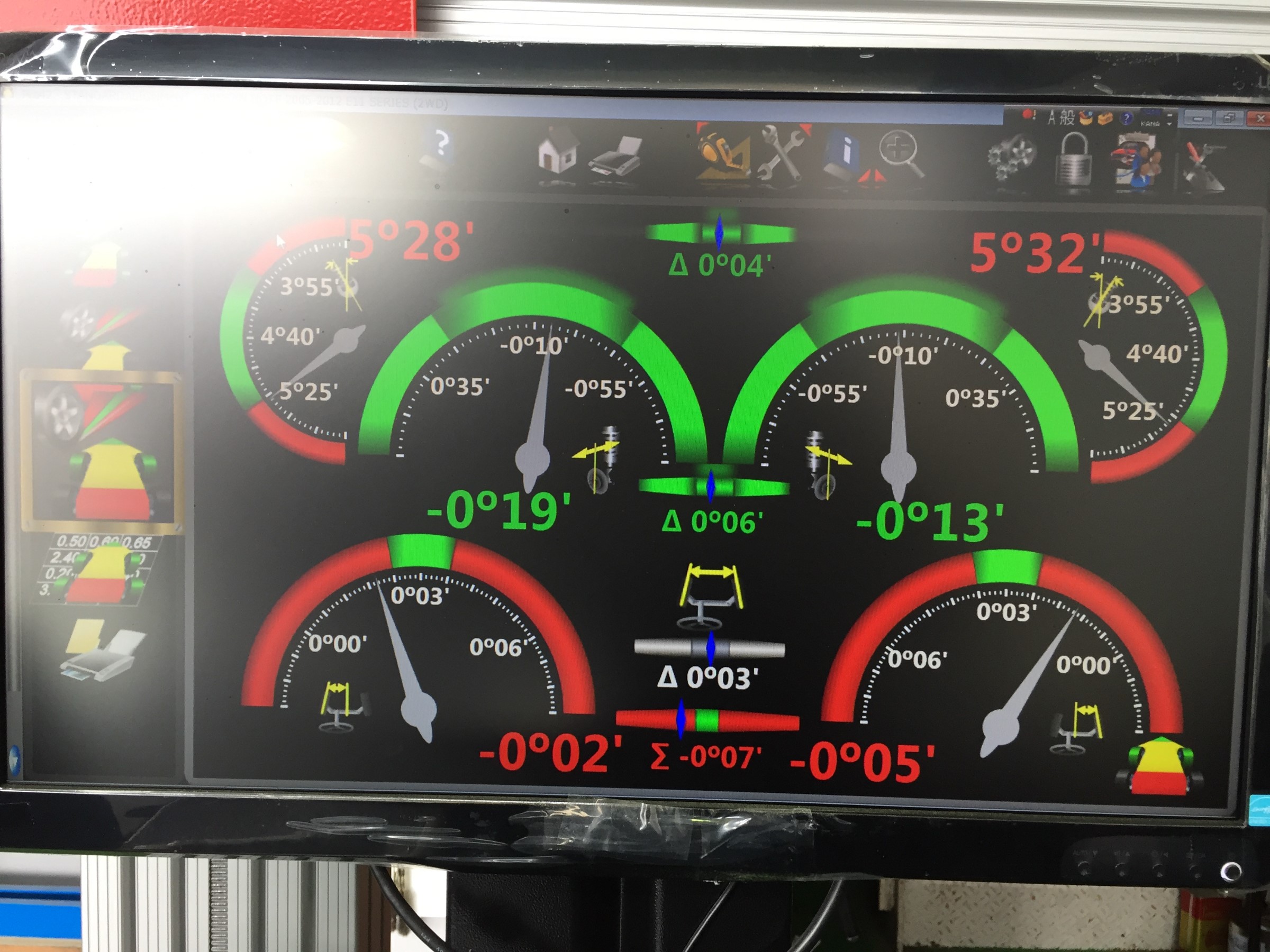 今回のノートは基準値に対して、トーアウト(車を真上から見た時タイヤが \ / ←こうなっている状態)でした。