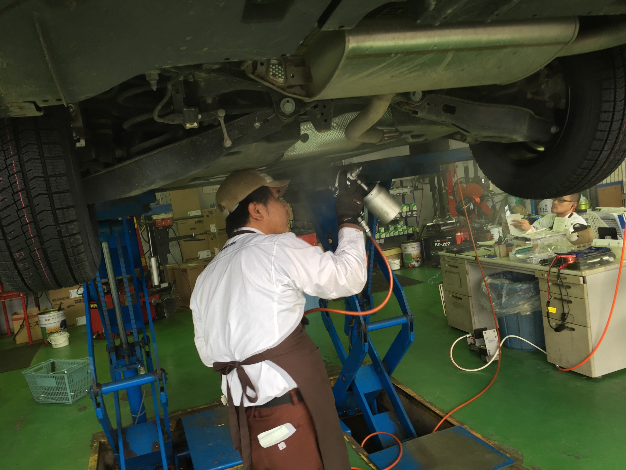 今回はアライメント調節と冬に備え、マフラーの防錆処理も行いました!