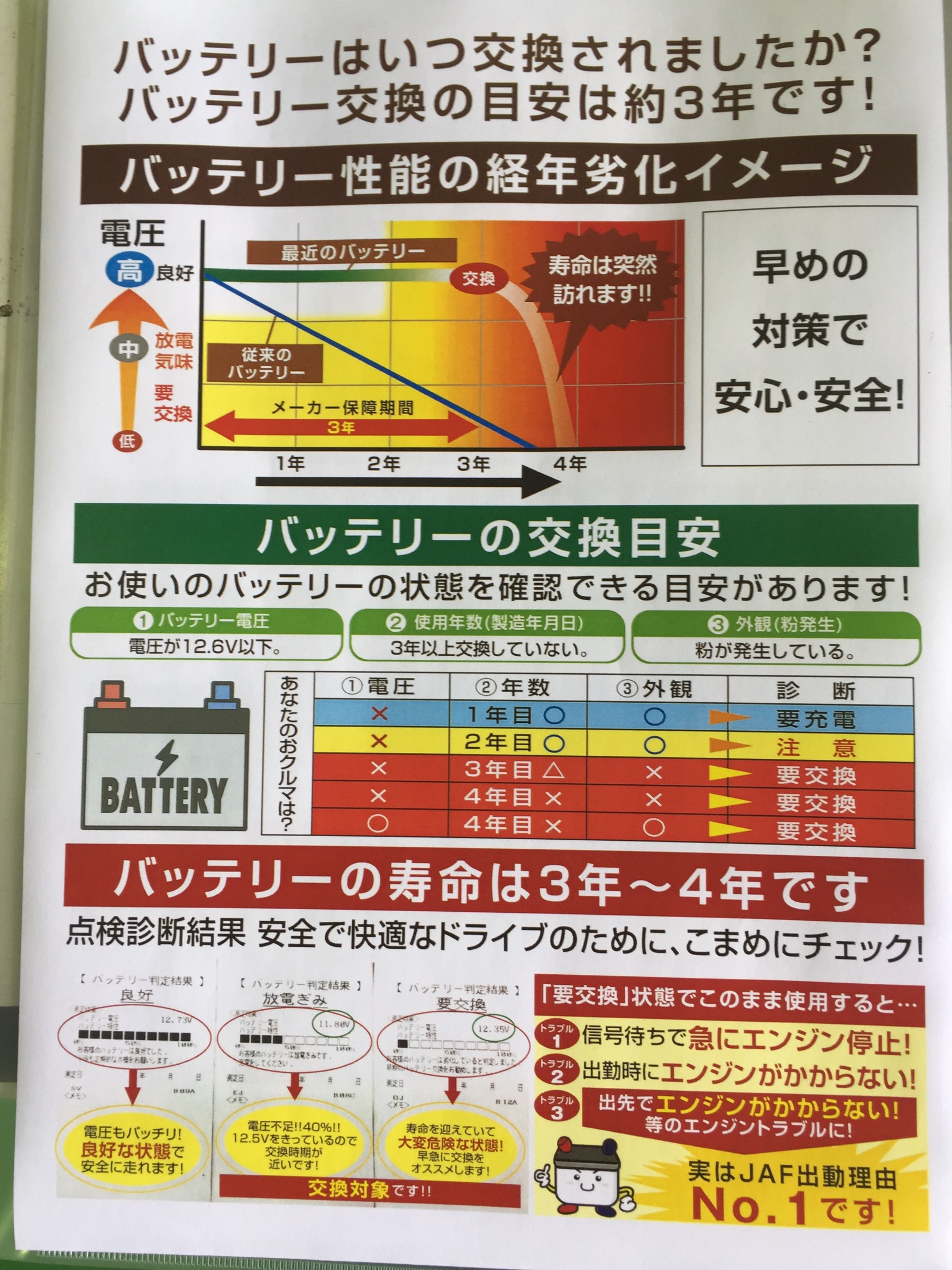 ☆寒暖差が大きくなってきております★ ポスト 2019年10月30日 こんにちは~タイヤ館 吉田店です('ω')ノ この時期になると、寒暖差も大きくなり体調も崩しがちな季節なので みなさまもご注意くださいね(>_<) このように気温が冷えてくると、人だけでなく お車も調子が悪くなりやすくなってしまいます。 なので、今の時期には「お車の点検」は必須です!!!!! 特に、バッテリーは気温がさらに低くなってしまう前に点検をお願い致します**