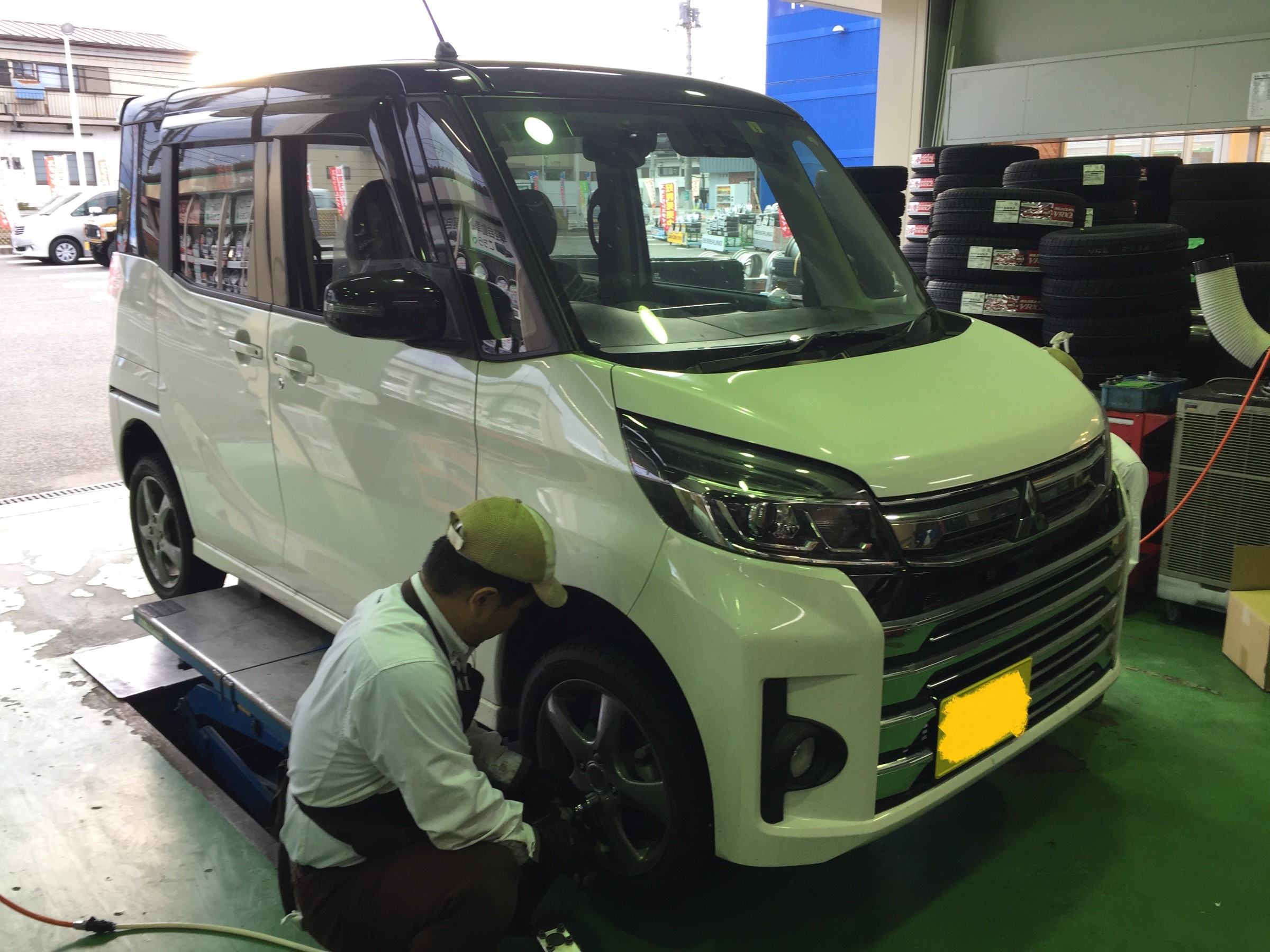スタッドレスタイヤ脱着は是非当店へ! eKスペース夏→冬タイヤ交換