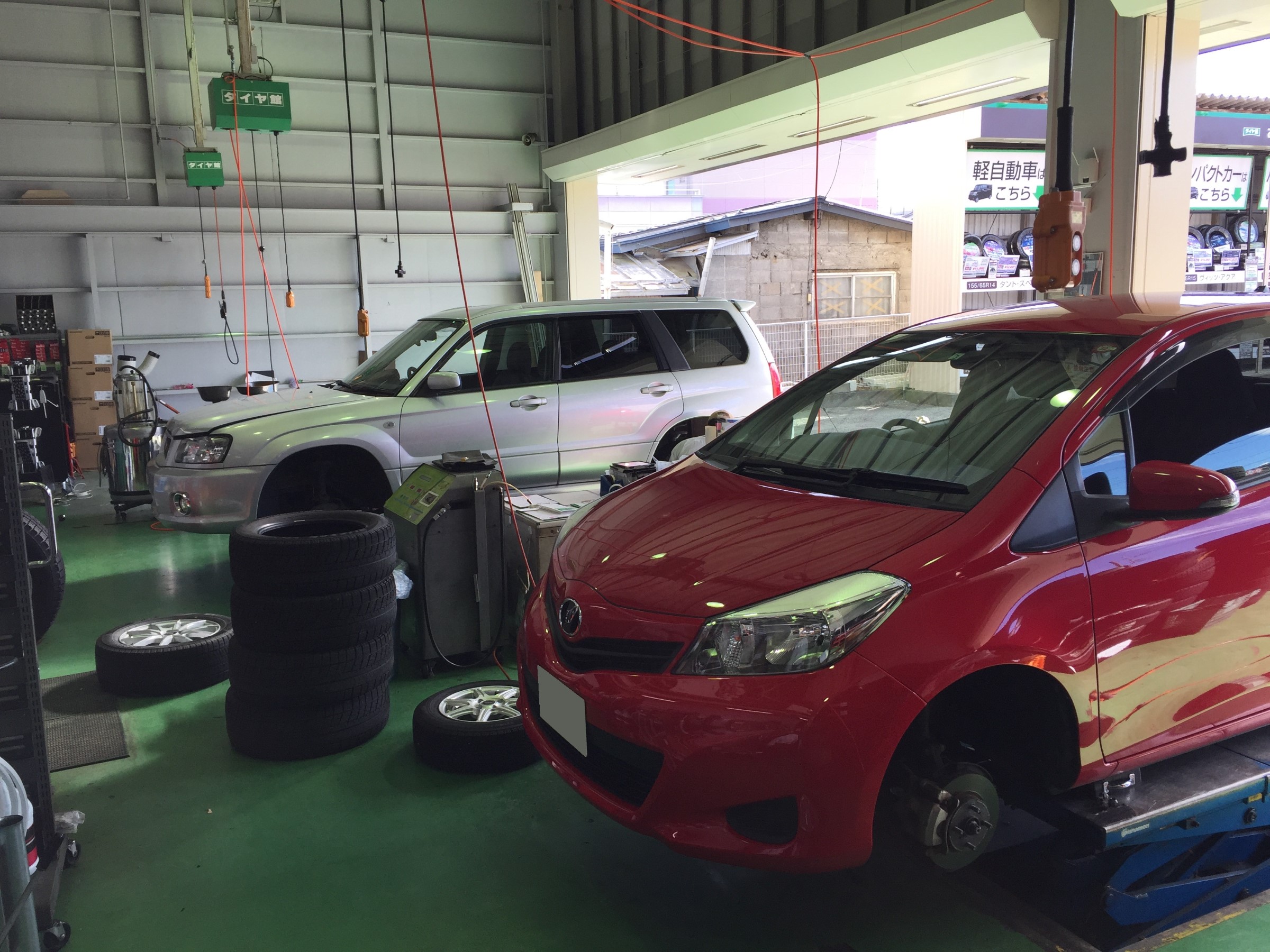 ↓ どちらも新品のスタッドレスタイヤ装着のお車。