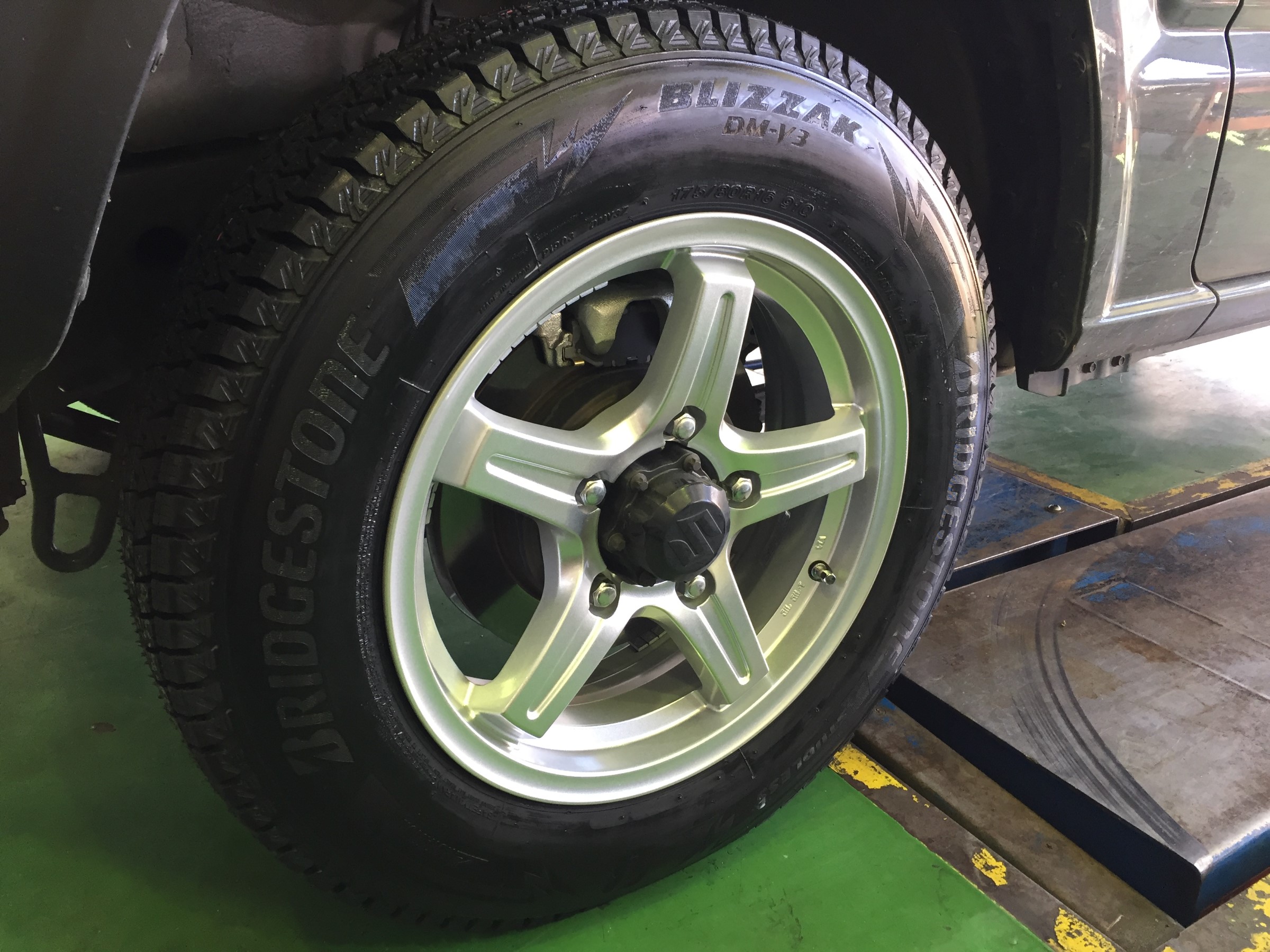 ↓ 今日は新しいスタッドレスタイヤとホイールのセットを装着です。