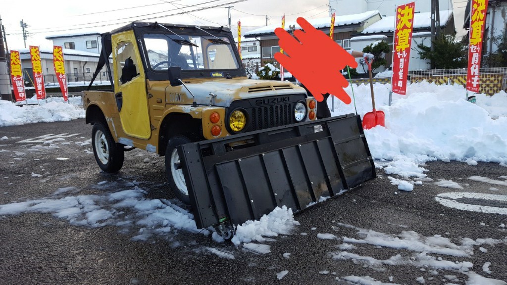 降雪時タイヤ館吉田店はジムニーワールドに・・・・ ポスト 2020年1月13日 昨年の降雪時、除雪を行った刑部師匠のSJ10!マーシャルのイエローライトが自慢です! 今年の自作スノープラウは刑部氏監修です!強度もあり 実用性最高です!
