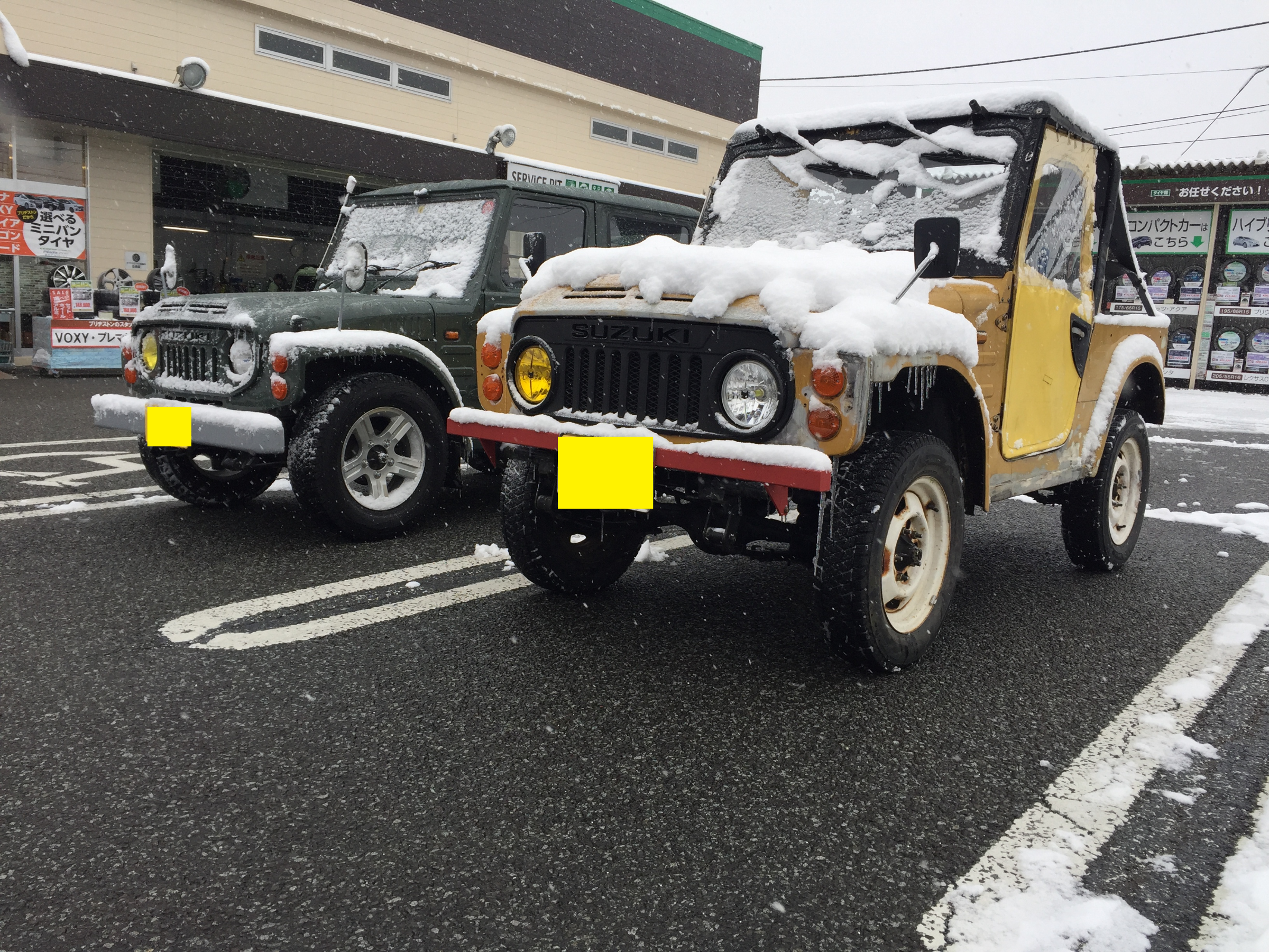 中村店長のジムニーに刑部スタッフのジムニー、そしてバモスちゃん