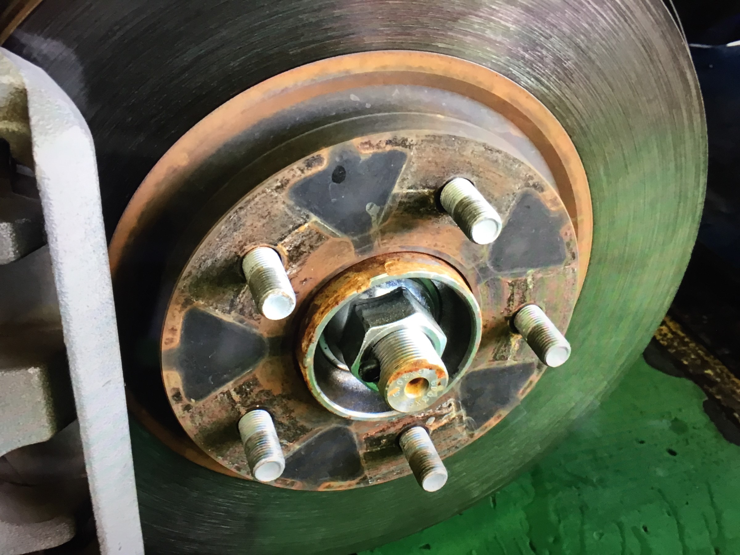 ↓ タイヤを脱着した際に見られる【ハブ】と言われる部分。かなり錆びてますね。^^;