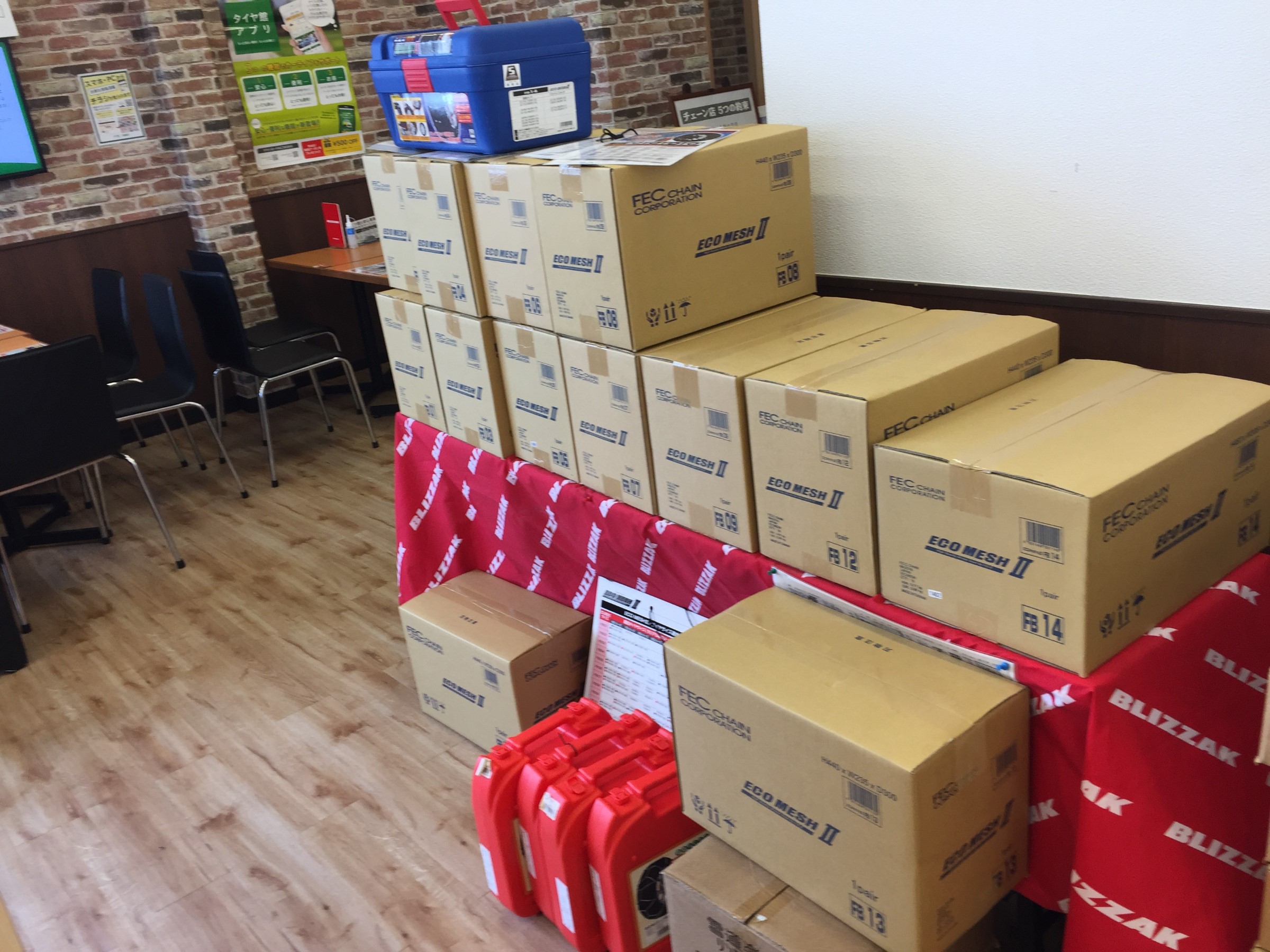さて、そんな今日のタイヤ館ですが、朝から沢山のお客様にチェーンやスタッドレスタイヤをお買い上げいただきました('ω')雪かきの準備の為に早めに出勤していたのですが、開店前に既にお客様の来店があった程。