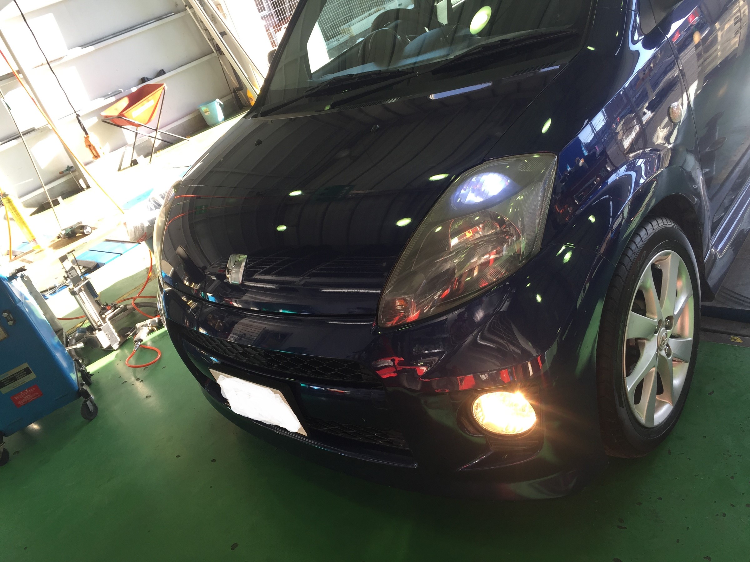 取り付けはいたって簡単・・・ではなく、パッソの場合はバンパーとヘッドライトをずらさないと裏側がやりにくいので大変でした(^^;