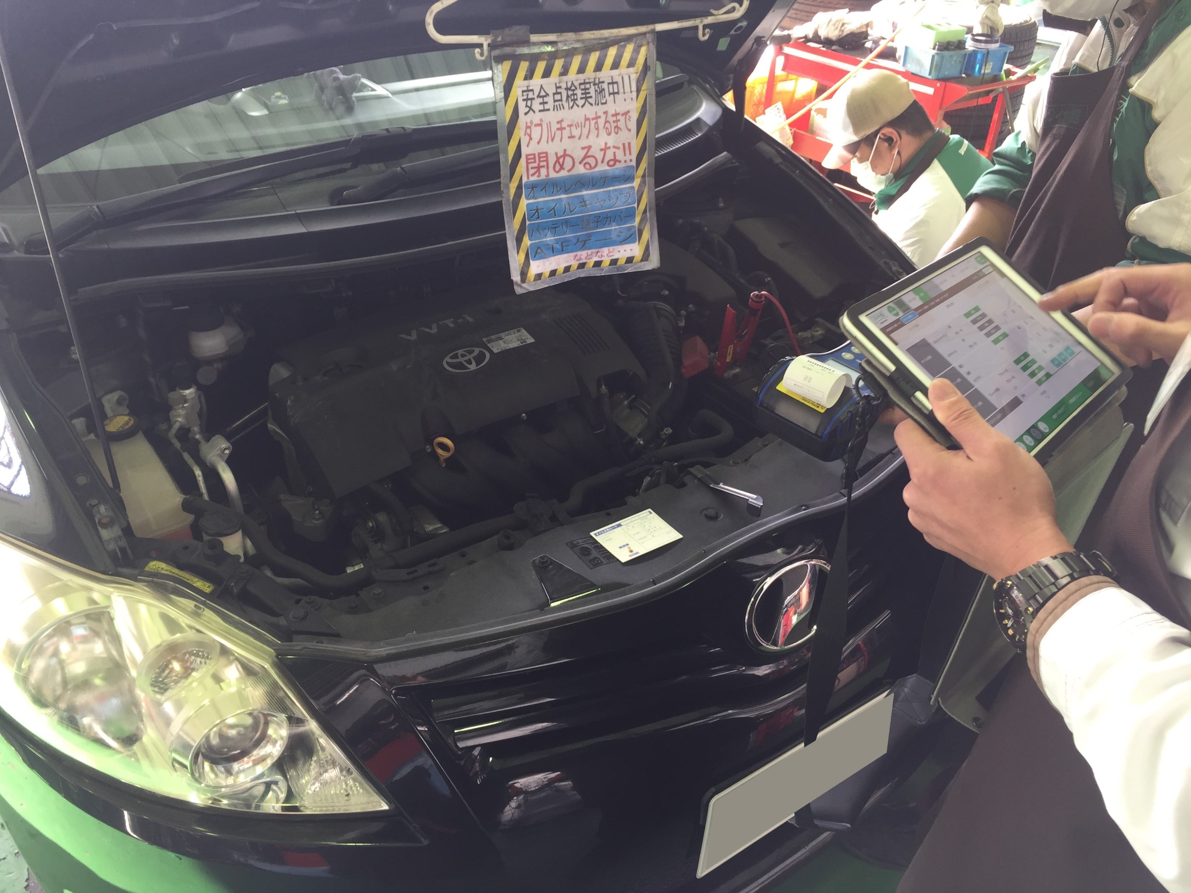 ↓ 当店の安全点検はタブレットを使い分かりやすくまとめてお客様にご報告しています。
