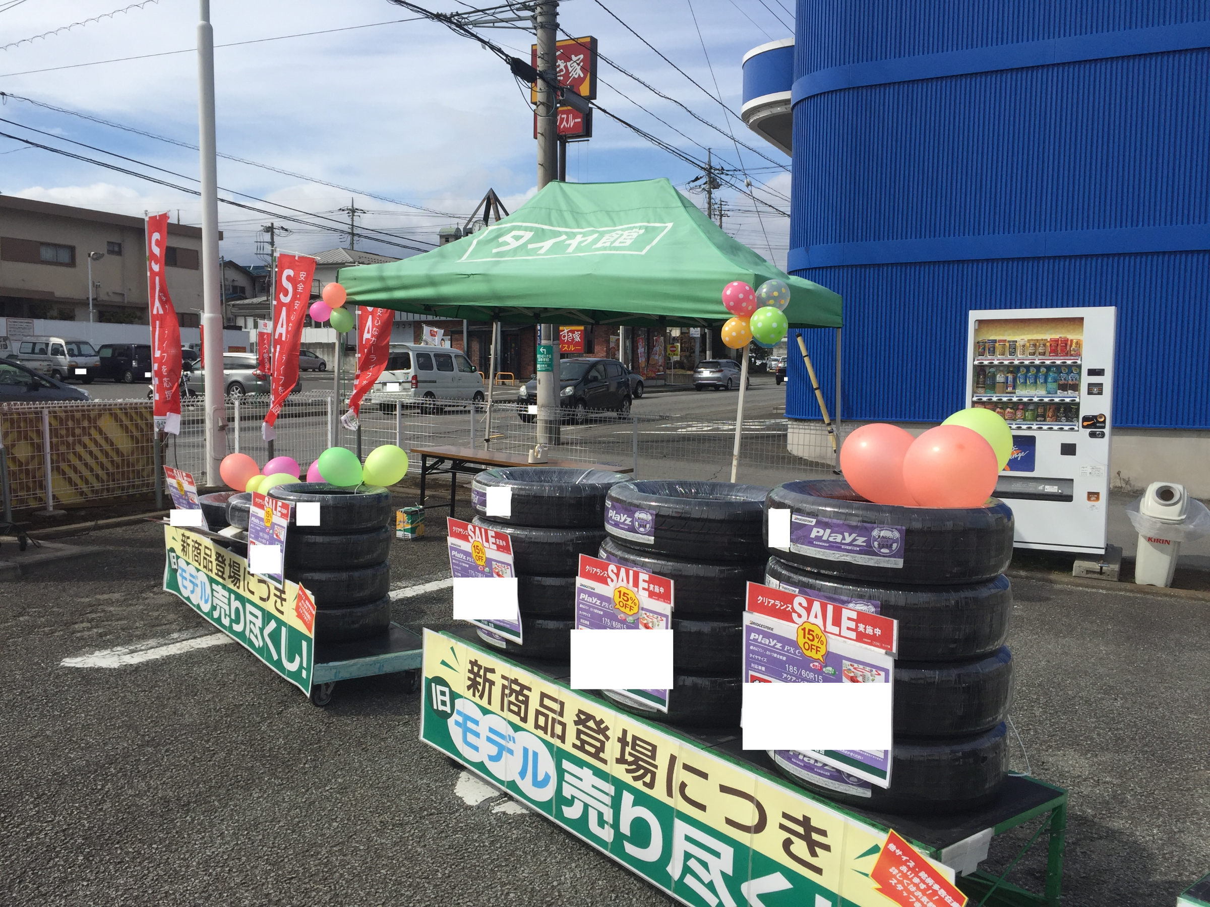 タイヤ館吉田店も風のようすにあたふたしています。