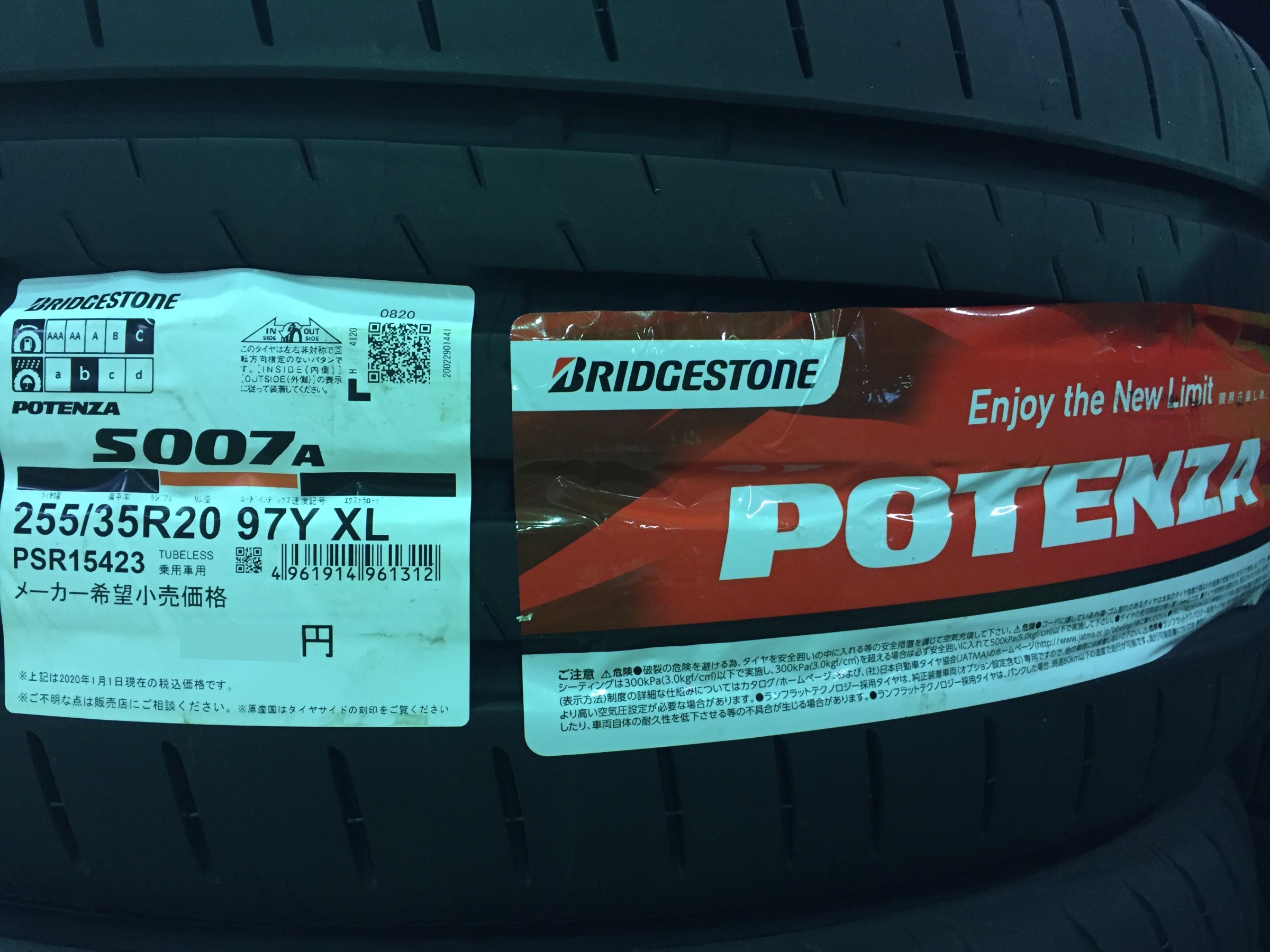 装着したタイヤはポテンザのS007Aです。