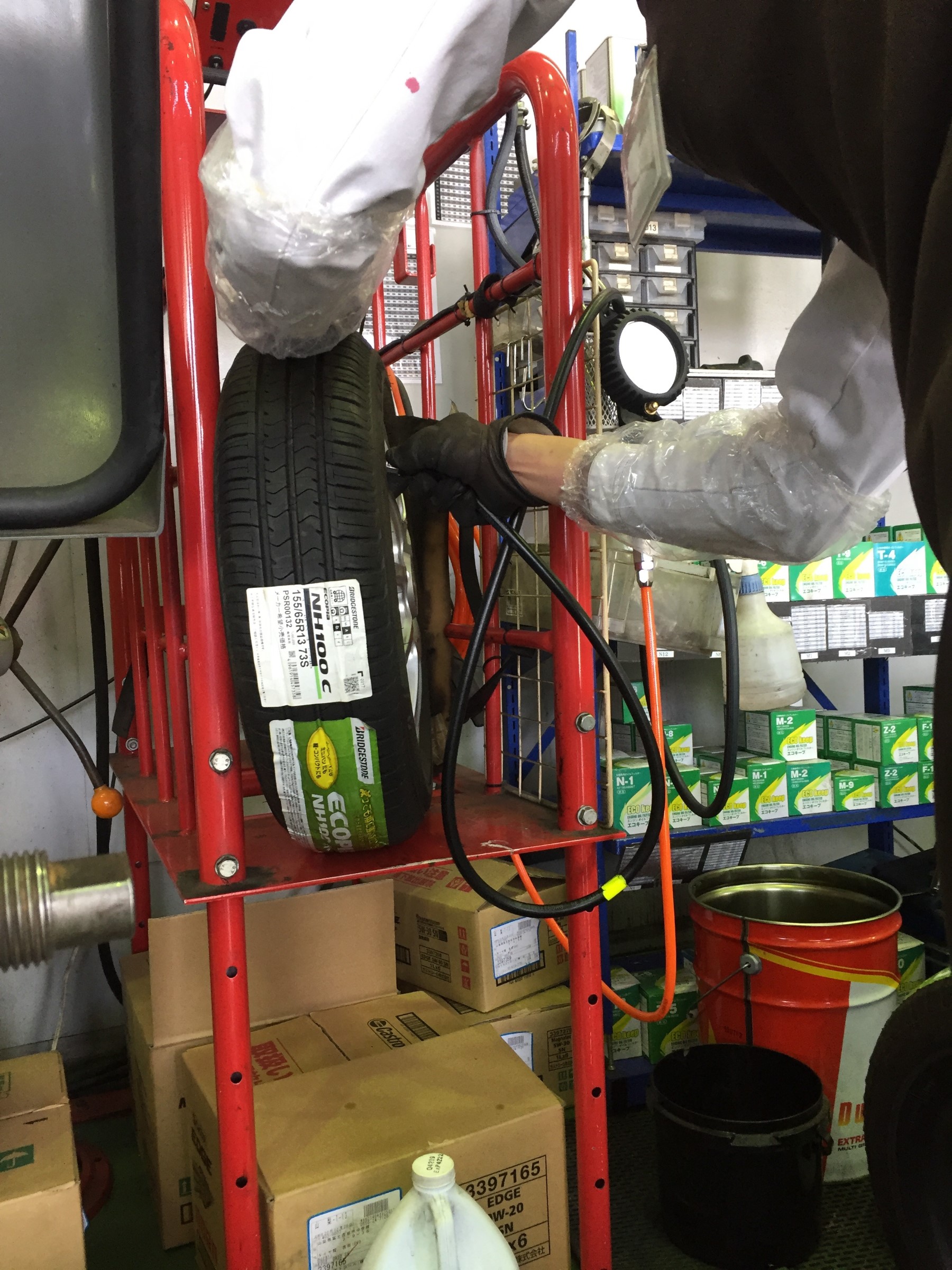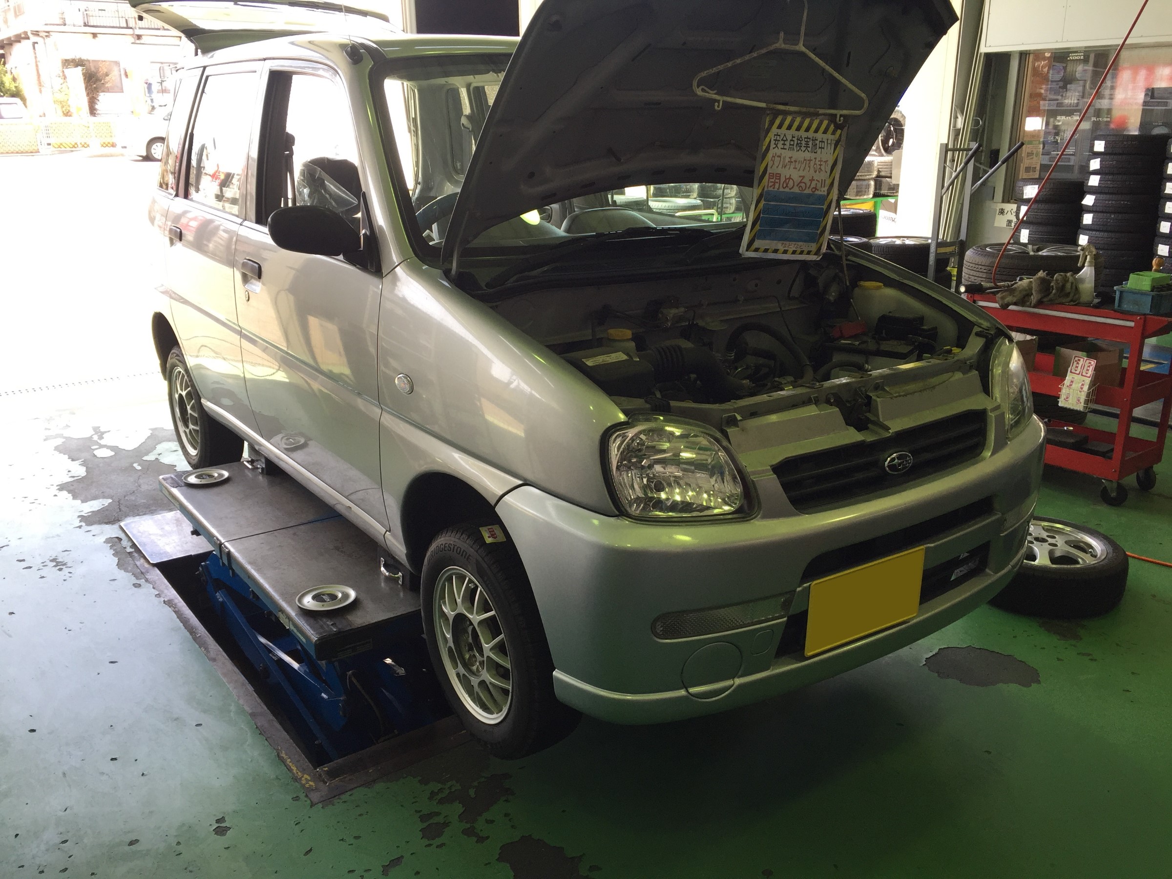 ↓ こちらも同じく飛び込みで来店されたプレオ。タイヤチェンジャーが唸ります!