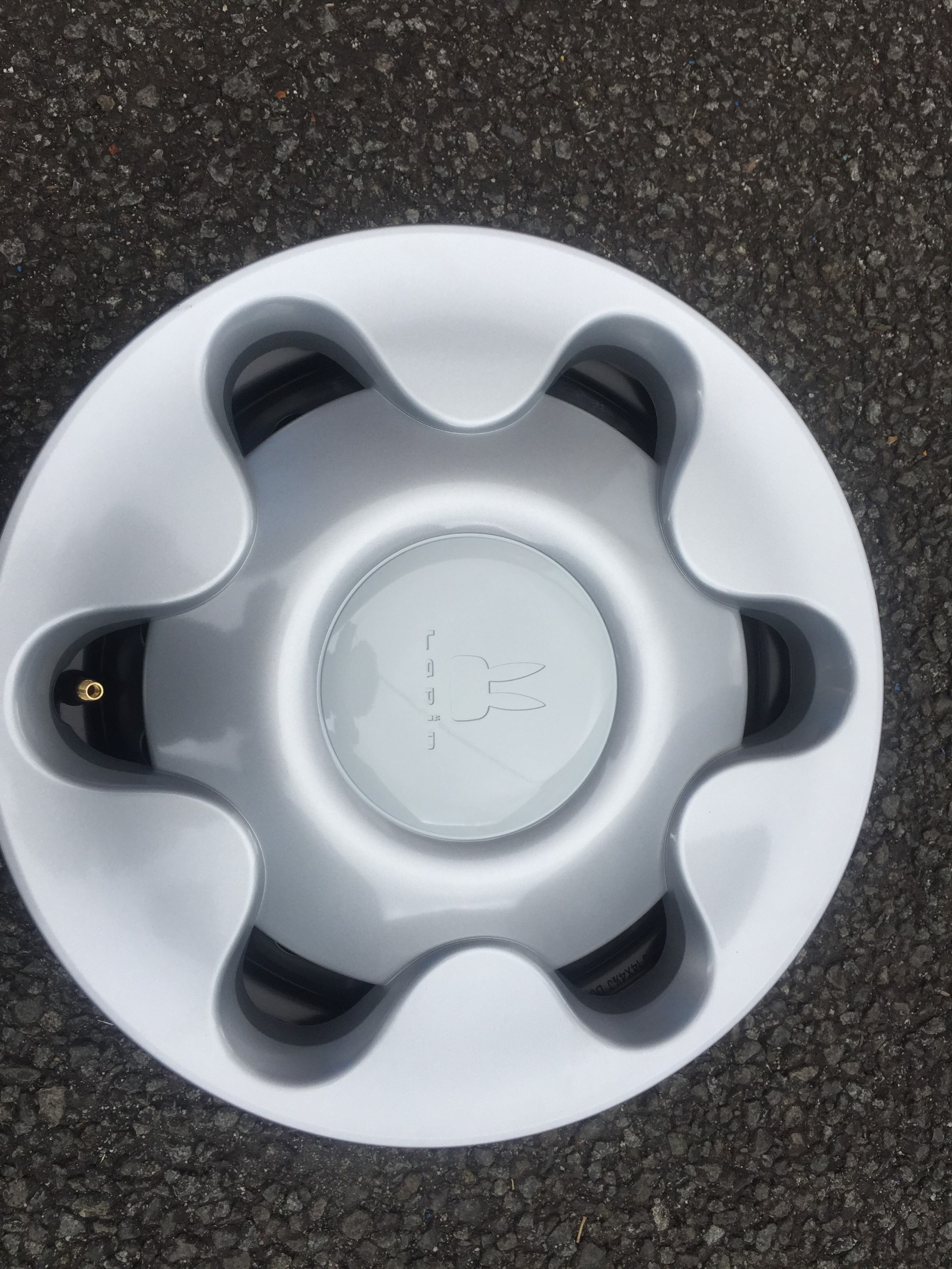 スチールホイール(鉄ちんホイール)にラパンのかわいいキャップがついています。