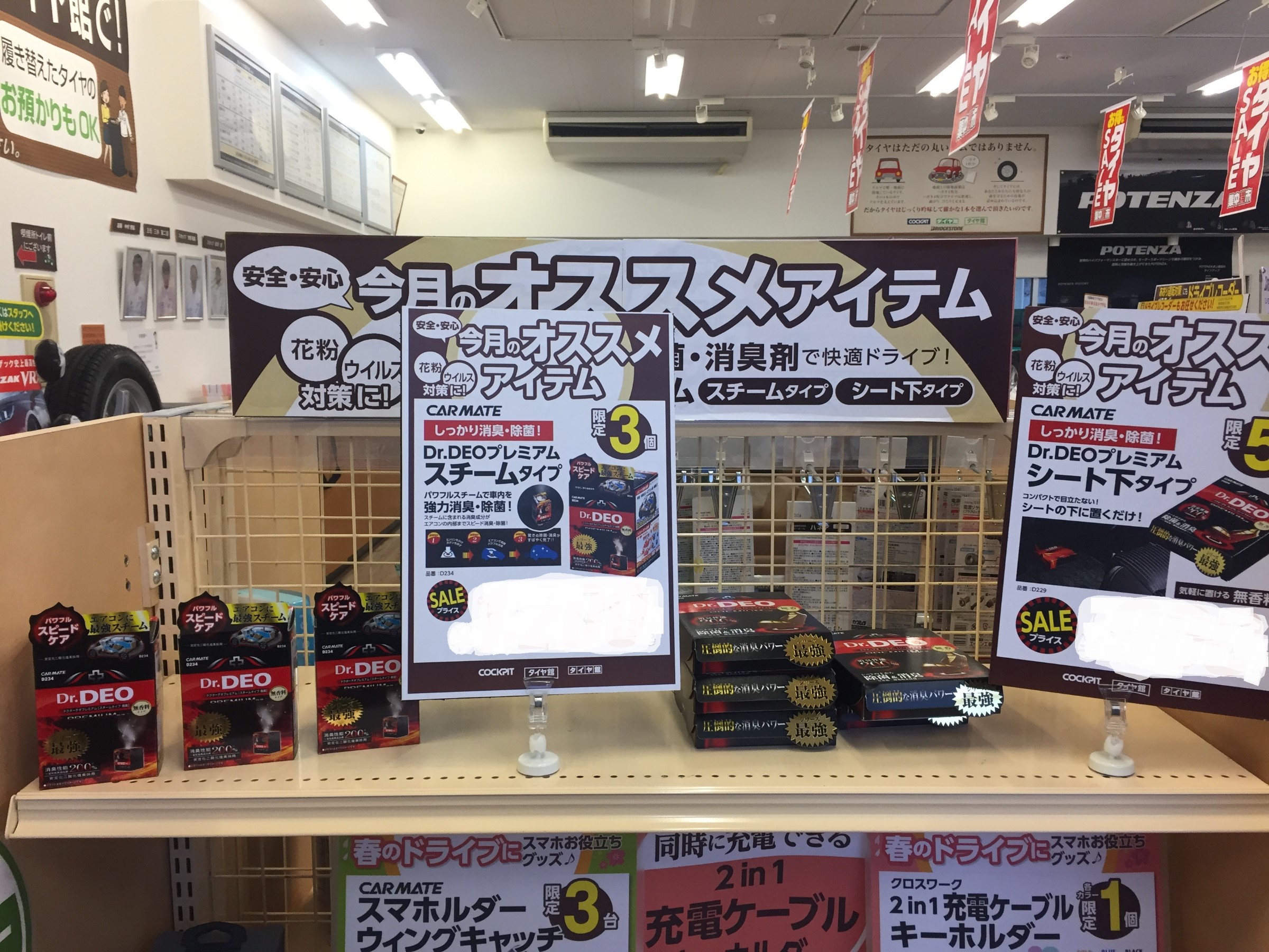 タイヤ館ではそんな車内の空間も安心して過ごせるように、消臭・除菌グッズの取り扱いを始めました!(`・ω・´)ゞ