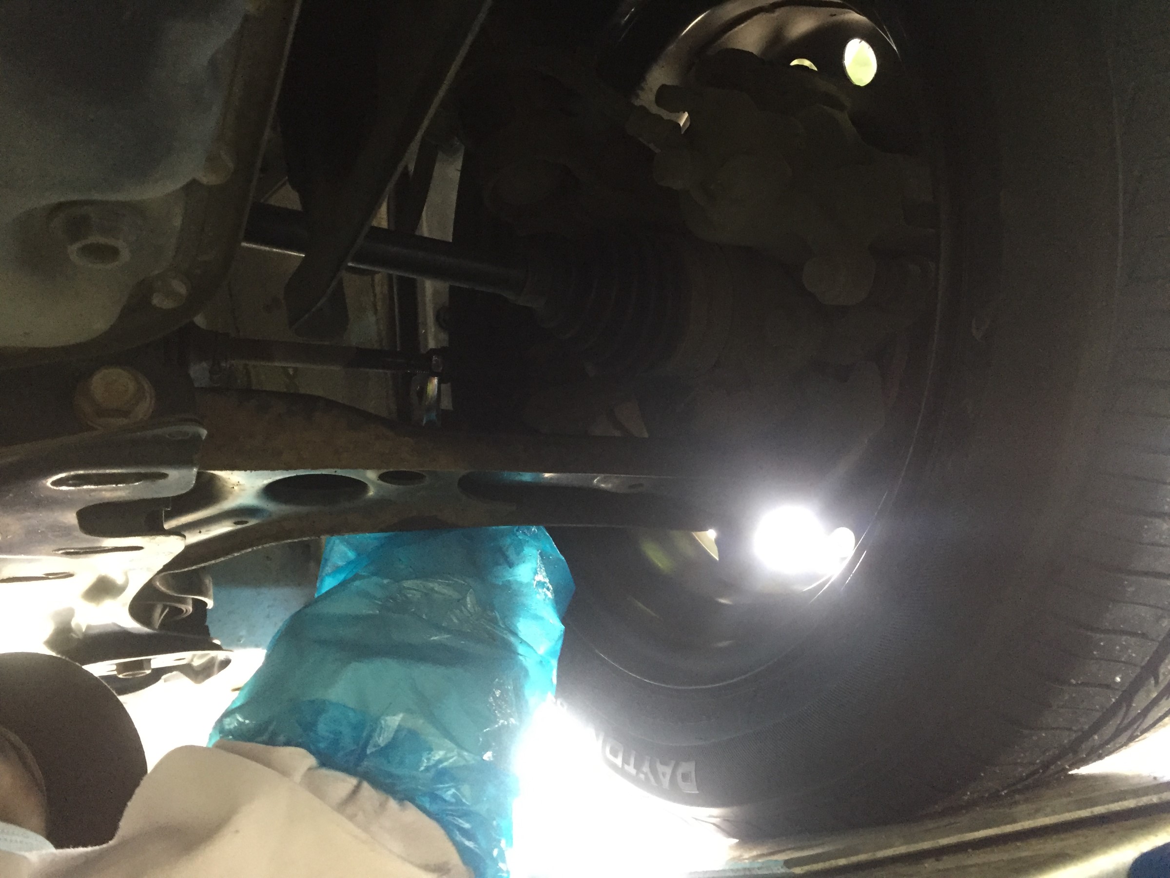 ↓ 左前の足回りを調整中。