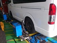 本日は、ハイエースのアライメントを実施した後に、下回り点検を行いました!! 最近では、アライメントも認知されてきていますので、事故った車両はもちろん、 タイヤ交換・ローテーション・スタッドレスの脱着などでも増えてきていますね。 富士吉田地区では、当店しかアライメント機材はありませ...
