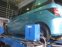 タイヤはブリヂストンのお手頃モデル「NEXTRY」を入れさせていただきました☆ ブリヂストンテクノロジーを、お値打ちに体感できるタイヤですので、入門用にぜひご使用してみてください(*^_^*) そんでもって最後の仕上げはアライメント!!しっかり調整をさせていただきまして、これでタイヤも長持ち...