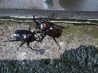 先日、今年初めて山梨でのミヤマクワガタ採集ができました!! オスの体長68mmと、まずまずの大きさですね!!目標は70mmオーバー!! メスも大きく40mmです!! たくさんタマゴを生んでもらいたいですね~♪