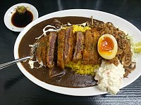 3月以来、2回目の訪問となる『カレーは飲み物。』というカレー屋さん!! 安くて・美味くて・ボリューミーの3拍子揃っています!! 今回の注文は・・・牛カツカレー(山)¥1000 10種類あるトッピングの内、3種類までが無料という嬉しいサービスがあります。 そこで、①味玉 ②ポテトサラダ...