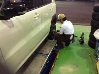 先日の台風でピット下に水が溜まってしまったので新人スタッフの刑部君 リフトの掃除に挑戦中! ピット機材の大切にする気持ちが生まれますように・・・・