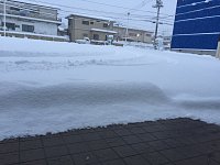 沢山積もりました。^^; こうなると駐車場に車を止めるのも大変ですね。 ↓ 30cm位は積もったんでしょうか。 ↓ 2時間ほど雪かきしましたがなかなか進みませんね。駐車場広すぎです。^^; ↓ この時は深々と雪が降り続いていたので雪かきが楽なほうでした。(雪が軽いという意味で) ↓ 後に雨...
