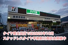 いつもタイヤ館吉田店をご利用いただきありがとうございます。 ここ2~3日で気温の低下を感じる方も多いのではないでしょうか? そんな中、今週末にスタッドレスタイヤ早期割引商談会を開催致します。 最新モデルのブリザック VRX2やお求めやすい商品のアイスパートナー2など・・ 多数ご用意してお...