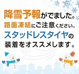 本日は降雪予報の影響もあってか、多数のお客様にご来店いただきました。 気象庁の発表によりますと、1/12に関東地方での降雪が予測されます。 「どうせ少ししか降らないから夏タイヤでも大丈夫。」と思っている方! 少しの降雪でも、路面上で解けた雪が氷の膜となり、大変危険な状況にもなりえます...