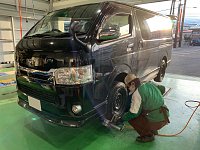本日はハイエースが入庫です! タイヤを8本組替した後、冬タイヤを装着しました。 ↓ 黒くキレイな状態のハイエースです。 更に一緒にオイル交換もしてくださいました! この時期履き替えはもちろん大事ですが、一緒に車のメンテナンス等もできたら 一石二鳥ですよね! 是非当店をご利用ください。 ...