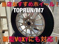 本日は新型VOXY対応のホイールをご紹介! ↓ それがこちら! TOPRUN(トップラン)/M7(エムセブン) です! なお、この店内に展示されているホイールセットはタイヤが【205/60R16 VRX3】 ホイールサイズは【16X6.5 5/114 +38】なので新型VOXYにピッタリのサイズとなっております! こちらのホイール...