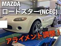 本日ご紹介する作業はMazda ロードスターのアライメント調整です。 ↓ 今のロードスターもかっこいいですが、私はこの丸っこいデザインのロードスターが好きです。^^ ↓ 平成14年式のロードスターでしたので下回りが錆て固着しているのでは?と予想し事前に調整可能かの確認と油を注入します。 ↓ ...