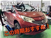 本日ご紹介する作業はNISSAN ノートのローテーション作業です。 ↓ 冬タイヤのローテーションを行います。 ↓ ローテーションをした後はしっかりエア点検します。 ↓ この時期特におすすめの作業です。 ↓ 更にヘッドライトコーティングも行いました。 夏タイヤから冬タイヤに履き替えて距離を走った方...