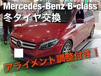 本日ご紹介する作業はメルセデスベンツ Bクラスのタイヤ交換です。 ↓ 先日冬タイヤのパンク修理でご紹介させていただいたお車で、タイヤの状態を考慮し、新品のタイヤ交換でご来店してくださいました。^^ ↓ 更に5年ほどお乗りのお車という事で、アライメント調整も行いました。 ↓ 新品の冬タイヤ...