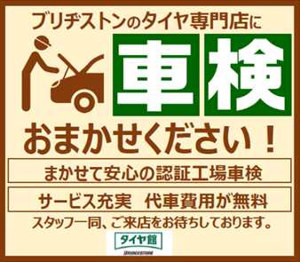 タイヤ館でも車検 受付しております。 車検、どこに出そうか迷ったら、まずはタイヤ館吉田店にご来店ください! 車検見積り無料 車検でお預かり期間は、代車を無料でお貸出ししております。(ガソリンは使用した分は負担いただきます)