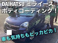 本日ご紹介するのはダイハツ ミライースのボディコーティングです。 ↓ まずは高圧洗浄機を使い、ボディの洗浄から行います。 ↓ 洗浄が終わったら専用の専用のコーティング剤をスポンジで塗っていきます。 ↓ 最後に吹上げて作業完了です。 ↓ 車が輝いていろんなものを反射しています。^^ ボディコ...