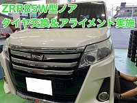 トヨタ・ノア(ZRR85W型)にタイヤ交換+アライメント調整を実施しました。