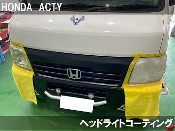 HONDA ACTY ヘッドライトコーティング 養生などの準備をしたらペーパーで磨きをします! 水をかけながらの作業となるので、タオルでボディを守ります ペーパーも目が粗いものから順に使用し表面を磨き落としていきます! 3セット目の磨きです 磨きが終わり表面を拭き上げると白くなっていますね 最...