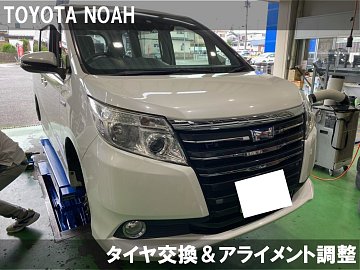 TOYOTA NOAH タイヤ交換作業 今回お取り付けさせていただくタイヤは 195/65R15 REGNO GRVⅡ 乗り心地が良く静かなタイヤです! 装着されていたタイヤはヒビ割れがかなり進んでいました 組み込み、バランス調整をしかっりと行い、取り付けです! 最後にアライメント調整も作業させていただきました! ト...