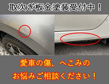 いつもタイヤ館吉田のHPをご覧いただきありがとうございます! 今回は、愛車のキズ・へこみでお悩みの方へお知らせです。 「飛び石でへこんじゃった・・・泣」 「うっかりしてこすっちゃった・・・Σ(・□・;)」 愛車を傷つけちゃうとショックですよね。 でも、「板金ってどこに頼んだらいいの?」...