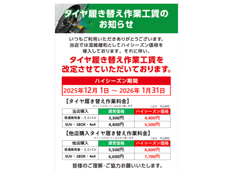 タイヤクローク(タイヤ保管)ご利用のお客様 引き出し手配に関して重要なおしらせ!