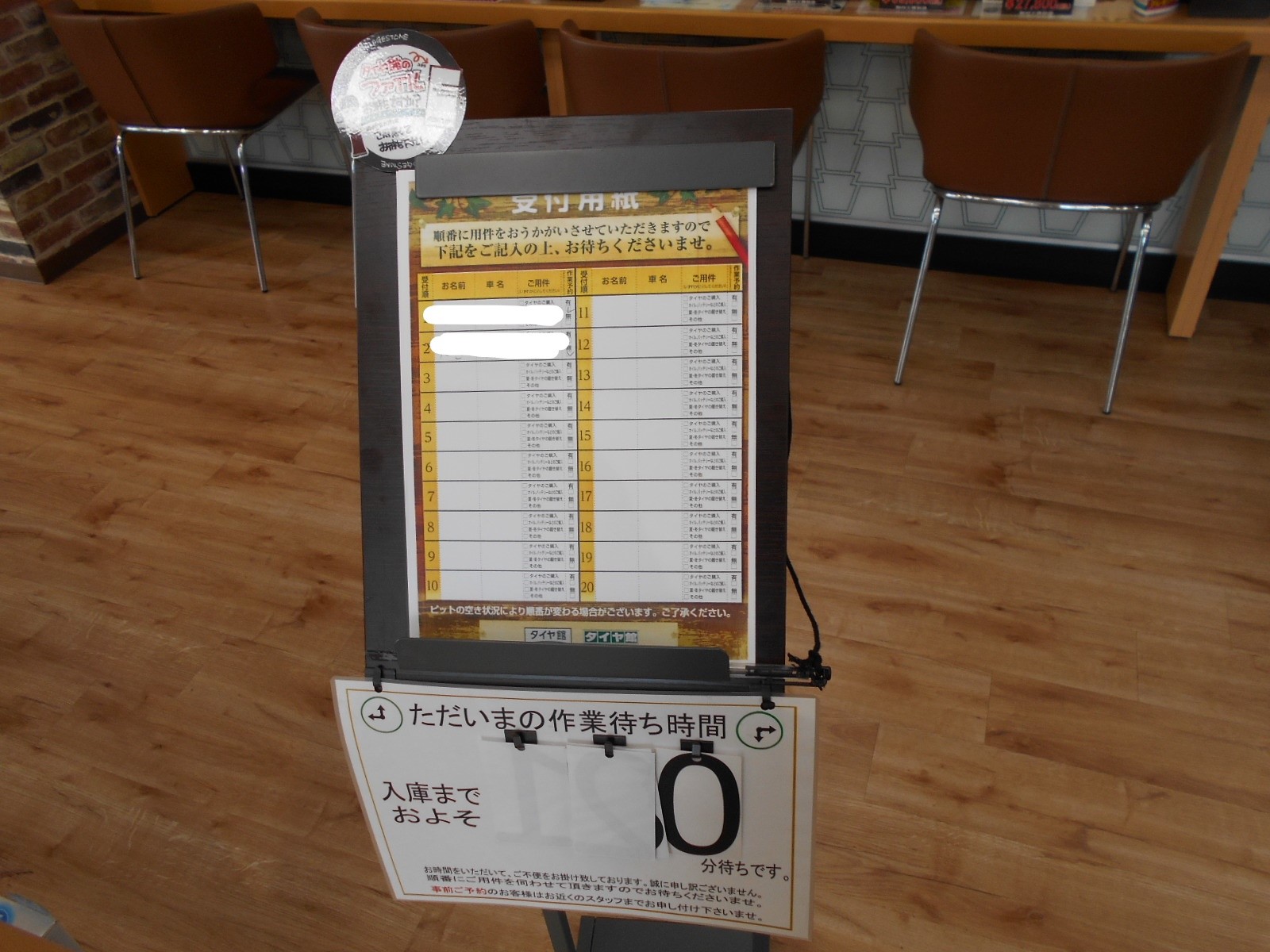 対応待ちのお客様は、必ずお名前や車種等をご記入頂き、店内でお待ちください。