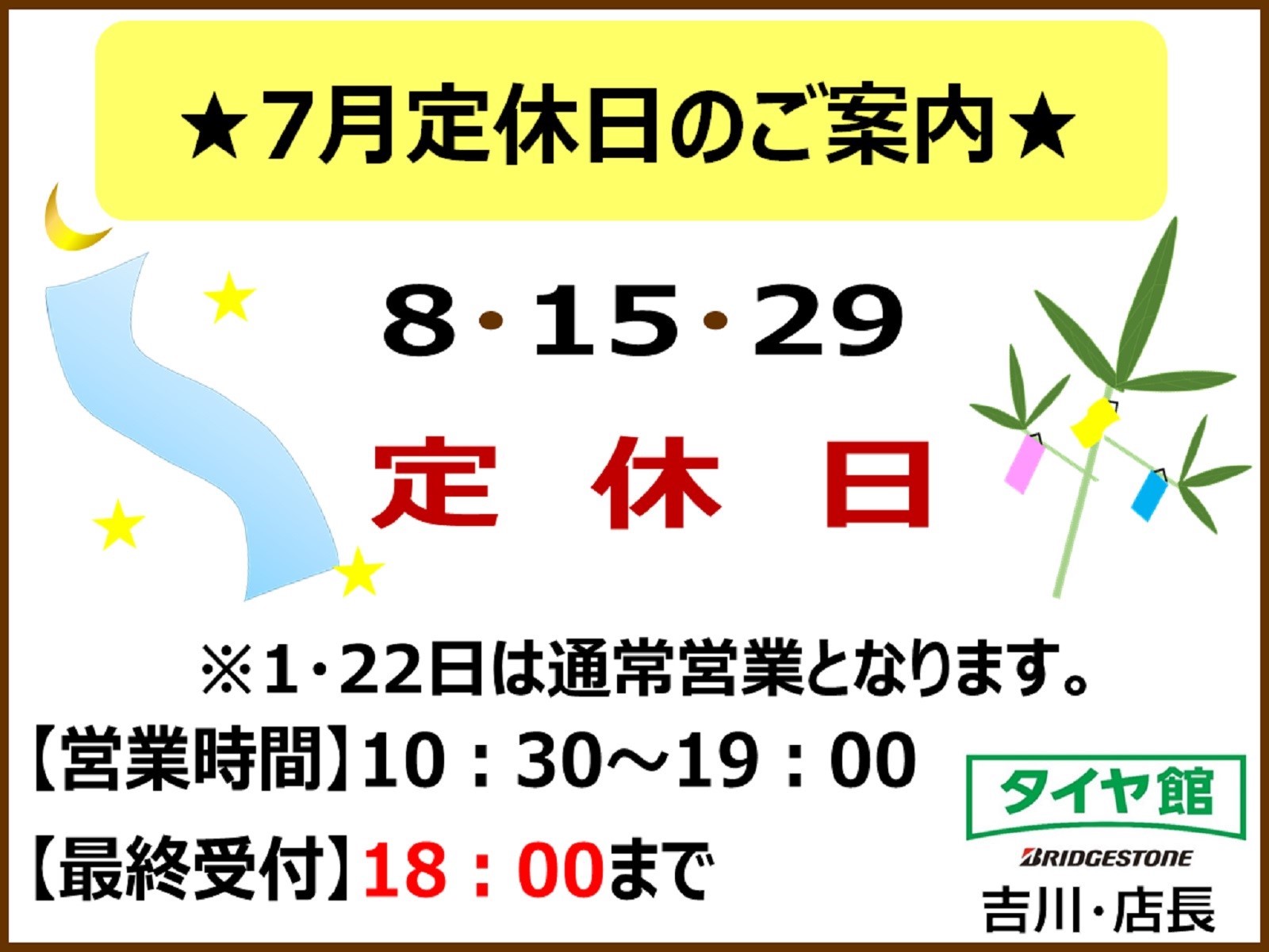 明日は、7/15 水曜日 当店定休日とさせて頂きます。
