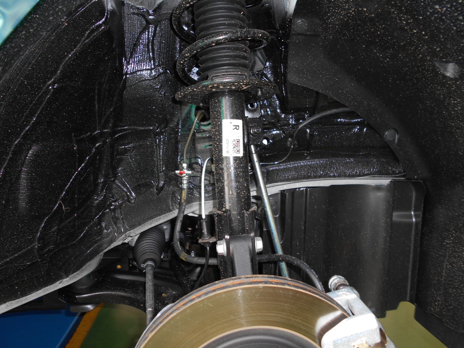 今日はお客様の意向で、車高は調整範囲ギリギリの「上げ」で調整します