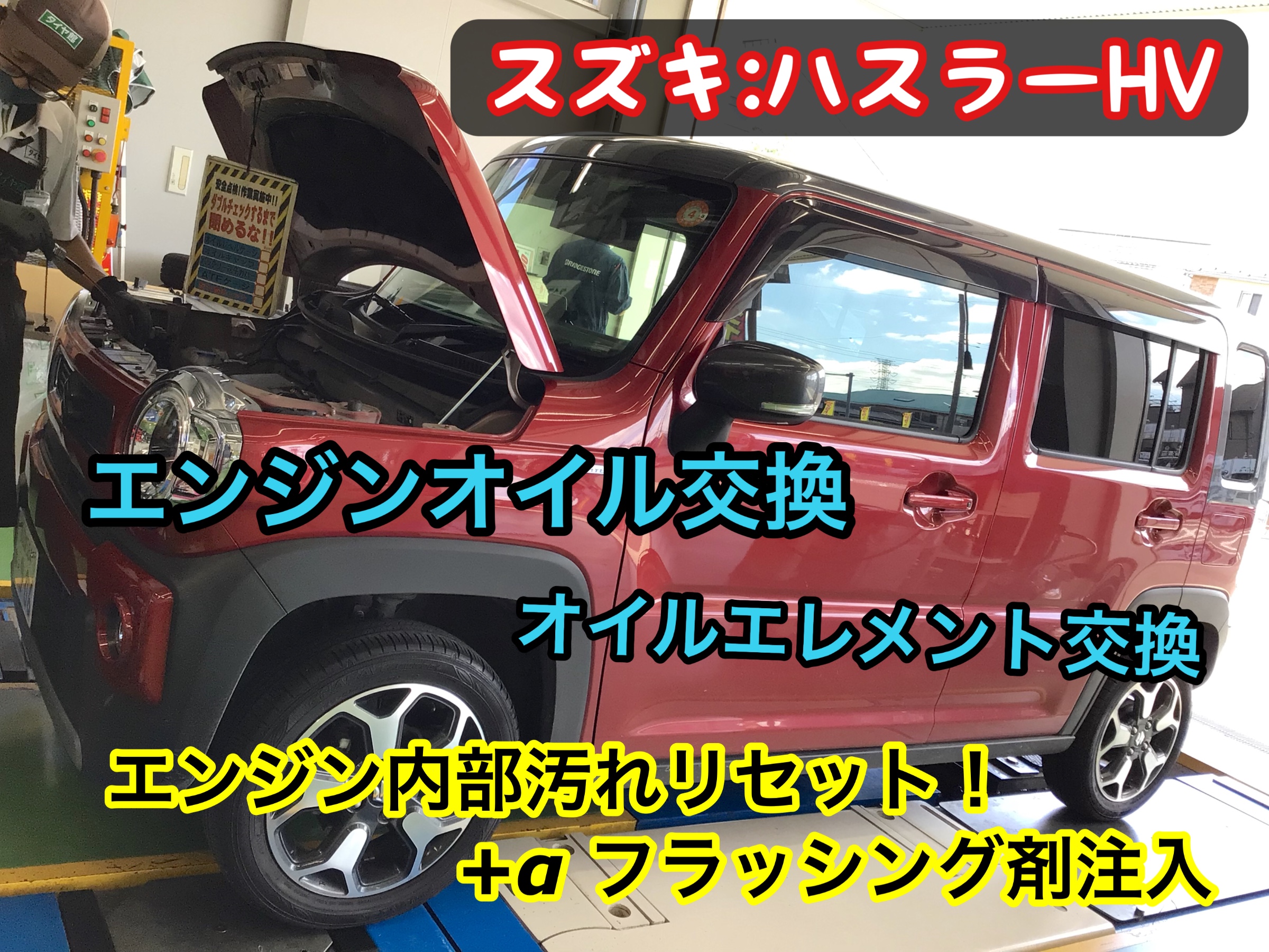 【スズキ:ハスラーHV】エンジンオイル交換×エンジン内部洗浄×メンテナンスパック