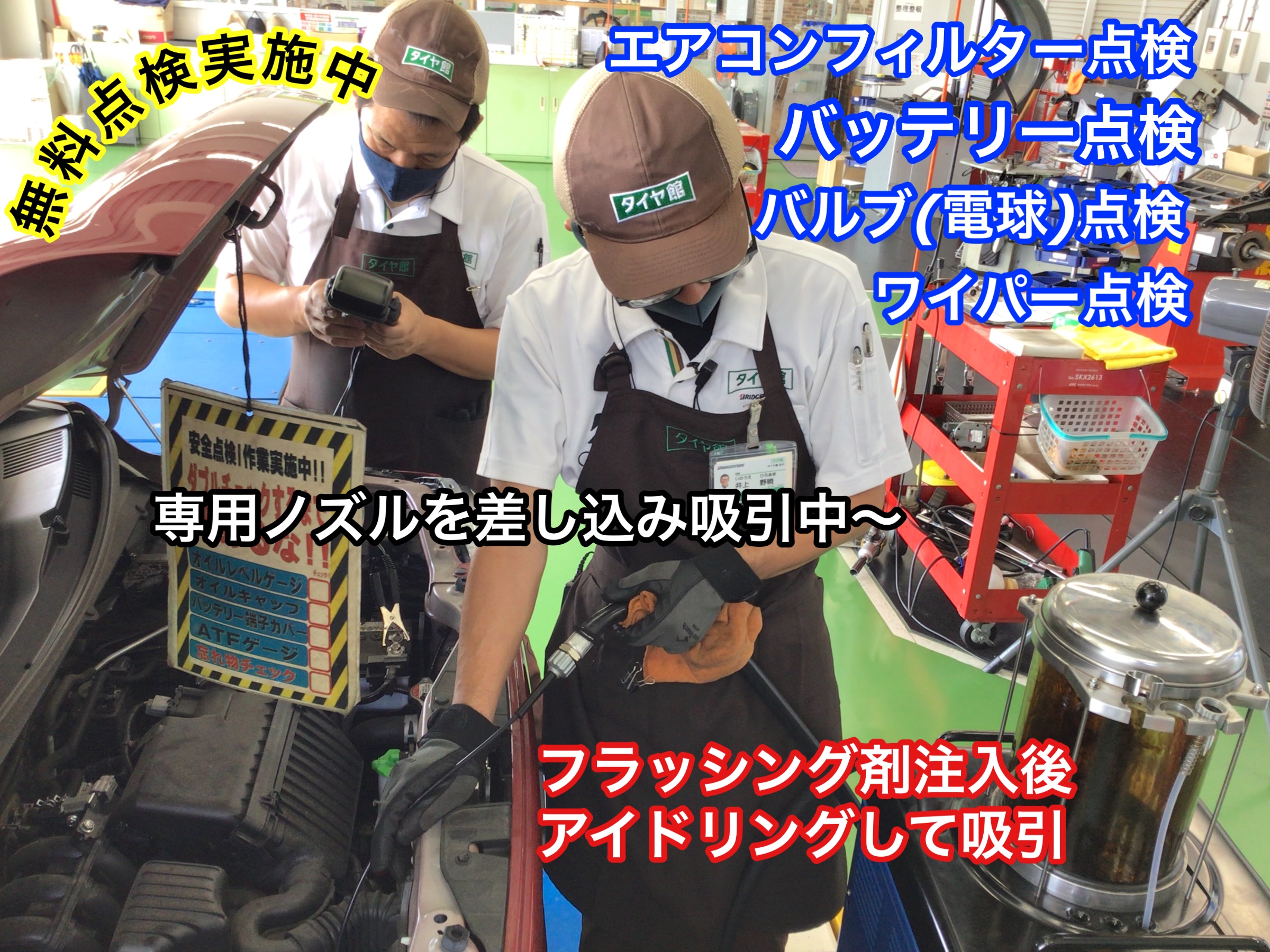 八潮・三郷・吉川・越谷・草加・松戸・タイヤ交換・脱着・スタッドレスタイヤ・エンジンオイル交換・バッテリー交換・ワイパー交換・エアコンフィルター交換・窒素ガス・空気圧点検・無料点検・無料見積もり・車検見積もり・防錆施工・ドライブレコーダー・ユピテル・コムテック・前後カメラ・360度カメラ・ワコーズ添加剤・ヘッドライトコーティング・車内抗菌除菌・GYEON・