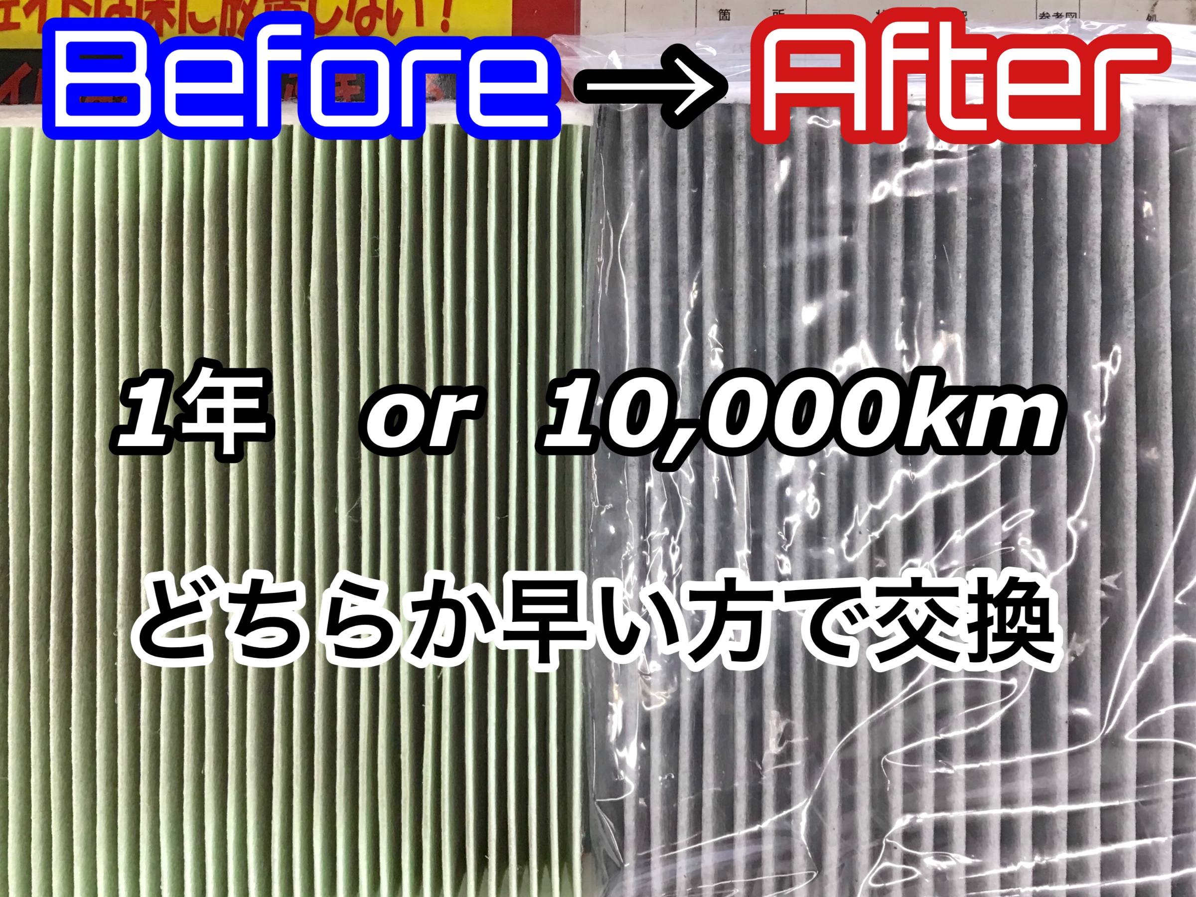 花粉やタバコでも汚れたり臭いの原因にも繋がりますので、1年or10,000kmに1回交換しましょう!