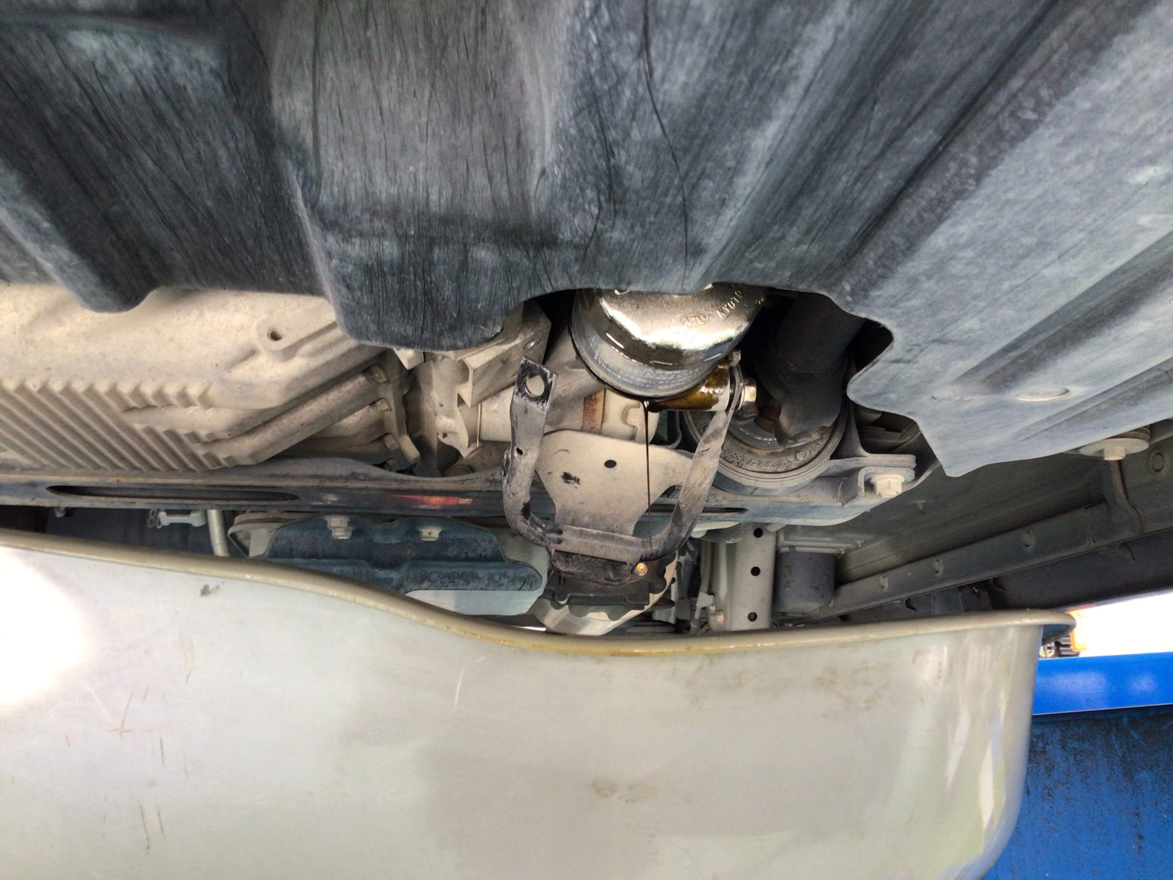 エンジンオイルを交換する際は、基本的に上抜きで実施しておりますが、車種やオイルパンの状況によってはエレメント交換と同時に、下抜きにて実施することもございます。